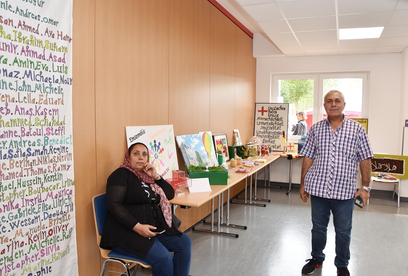 Maf (Initialen ihrer Vornamen Martha Angelika und Felicitas) Räderscheidt, Zeichnerin, Malerin und Performance-Künstlerin aus Schleiden – einst Meisterschülerin von Marianne Kohlscheen-Richter an den Kölner Werksschulen -, hat sich neben dem Gemälde „Mensch im Mittelpunkt“ noch durch die malerische Gestaltung der Treppenhäuser im neuen Rotkreuzzentrum verewigt.