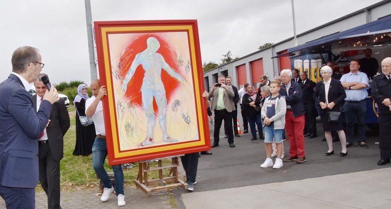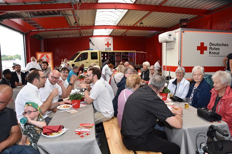 Erneuertes und erweitertes Rotkreuz-Zentrum Kreis Euskirchen/Eifel mit einem Tag der offenen Tür in Betrieb genommen – Landrat Günter Rosenke dankt „gut organisiertem Selbstläufer“ – Notstromaggregat, Kunstwerk und Zuschuss für auch im Konflikt coole Mitarbeiter