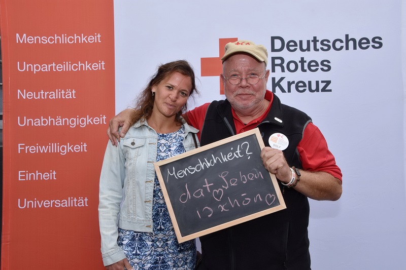 Man konnte sich unter fachkundiger Anleitung in Erster Hilfe versuchen. Es gab Wissenswertes über die Bildungsakademie, Seniorenreisen und Hausnotruf zu erfahren. Kinderschminken, eine Hüpfburg und eine Fahrzeugausstellung rundeten das Angebot ab. „Ännchens Waffeln“, ein Kuchenbuffet, Köstlichkeiten vom Imbiss und ein Getränkeausschank versorgten die Gäste mit Speis und Trank. Auch die Kamerad/inn/en vom Niederländischen Roten Kreuz waren vertreten.