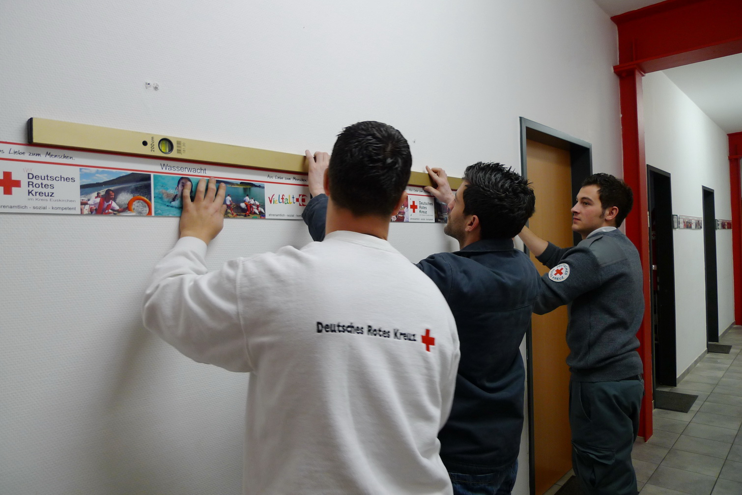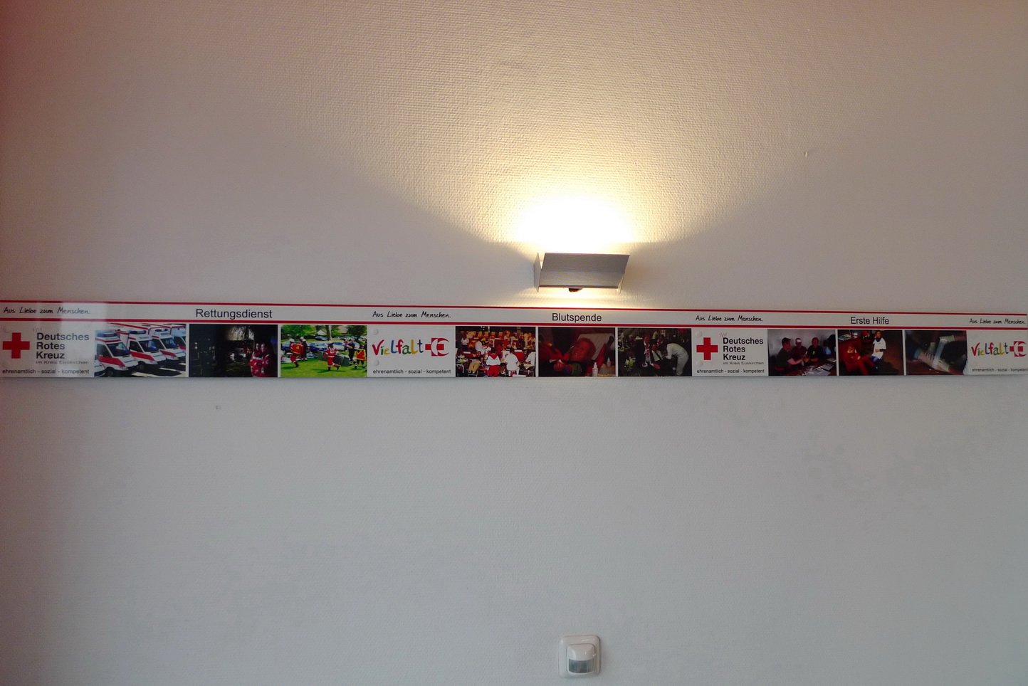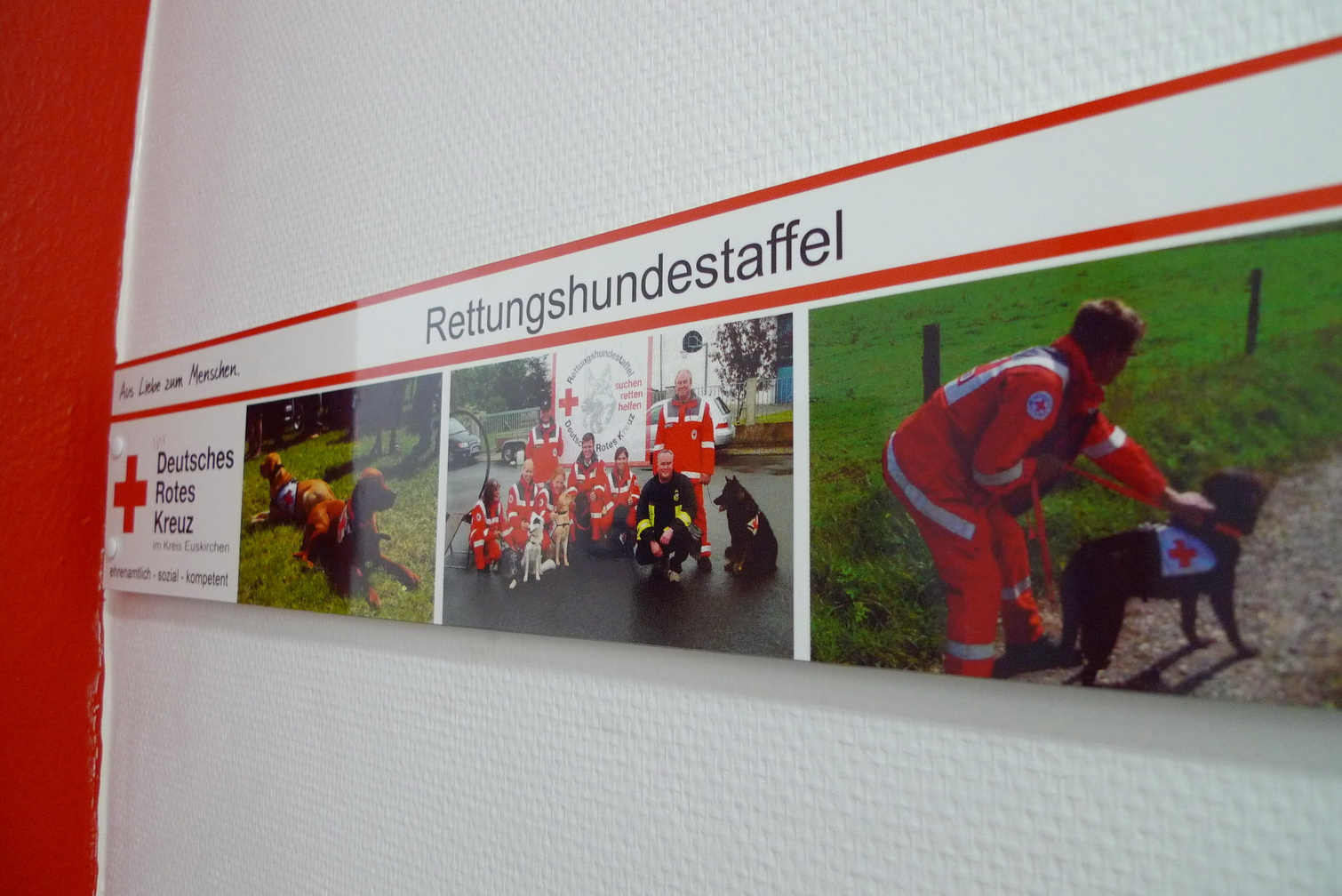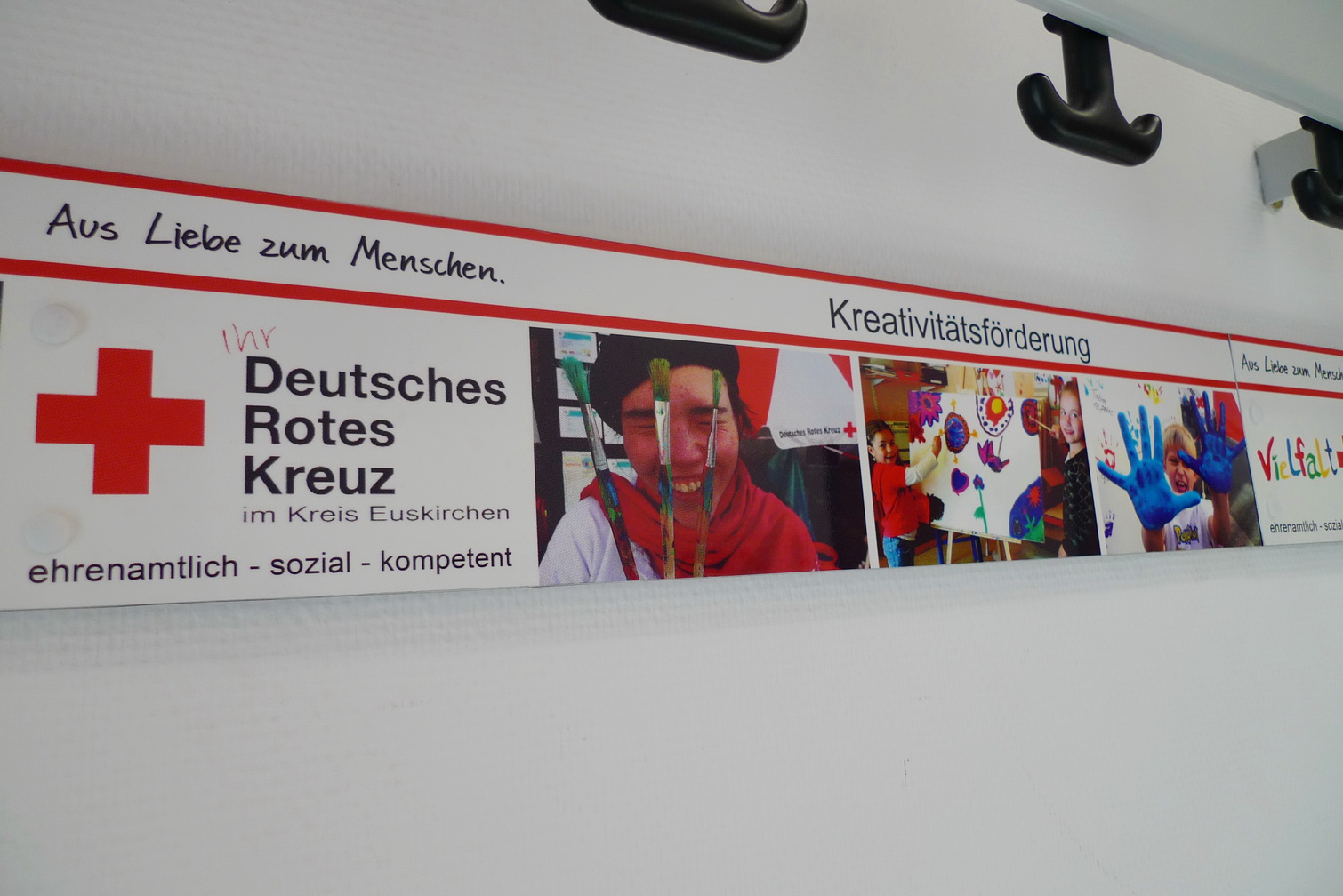 Vergangenen Freitag wurden die Flure des Rotkreuz-Zentrum "bebildert" - Eine Folge aus der Arbeit mehrerer Rotkreuzler, die feststellten, dass zum "Roten Kreuz in Euskirchen" reichlich viel dazu gehört. Um diese Vielfalt auch anderen verdeutlichen zu können, hängen nun einige Aufgabenbereiche des Roten Kreuzes mit je drei vertretenden Bildern in den Fluren. Eine kleine Entdeckungsreise, die nicht nur bei Besuchern den "Aha-Effekt" auslöst...