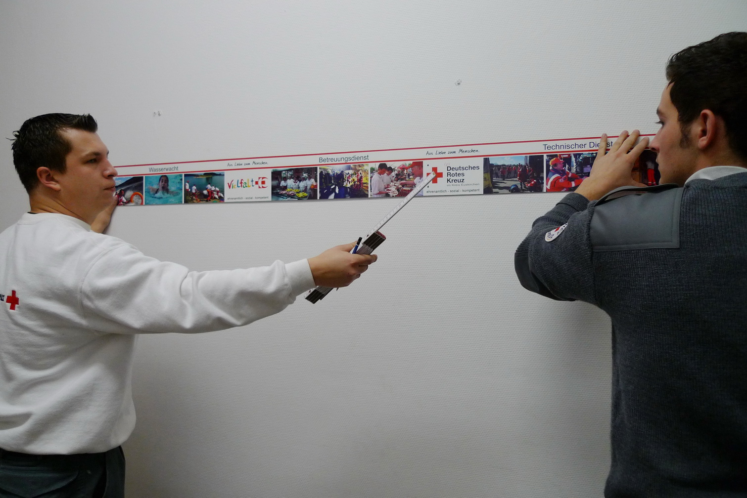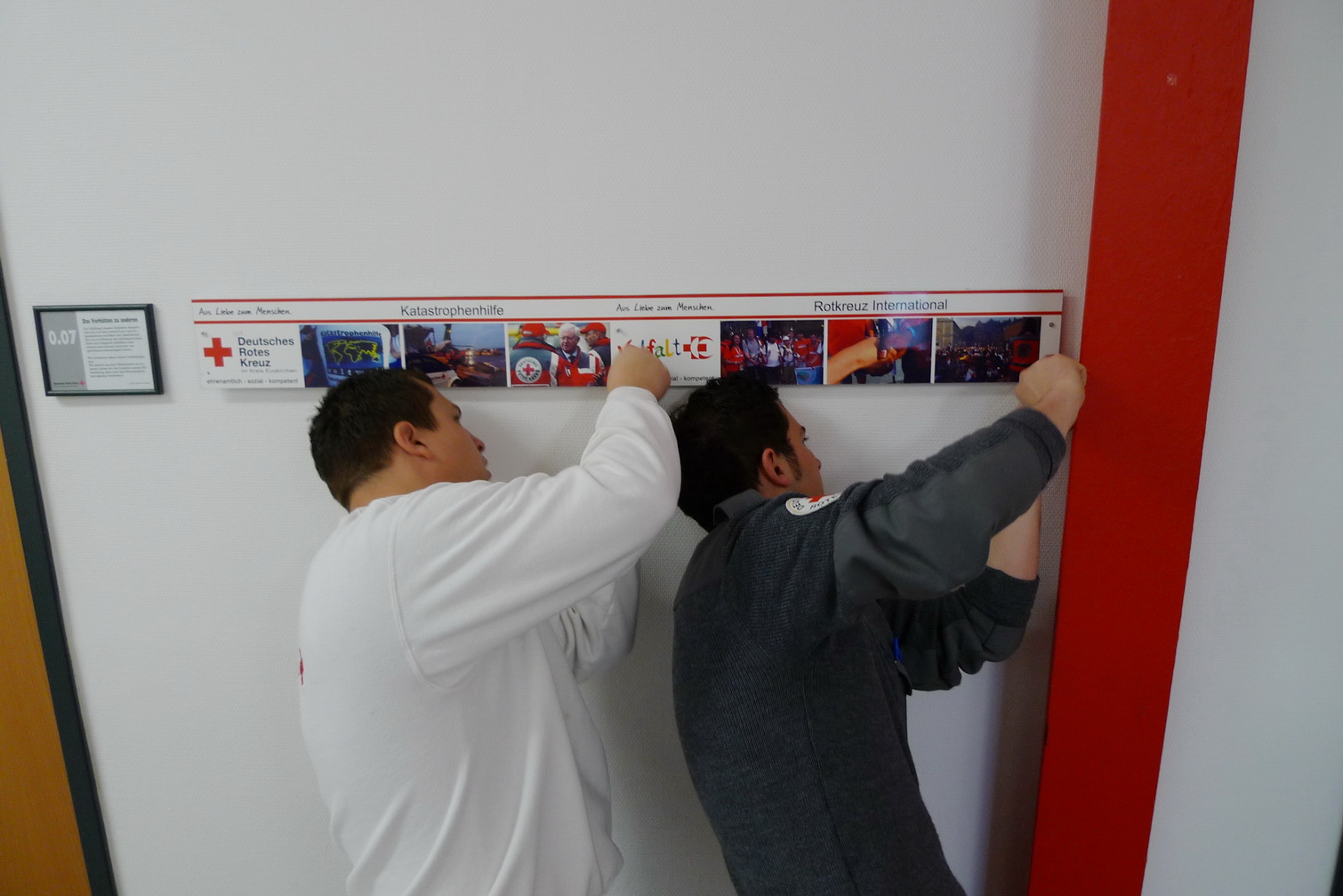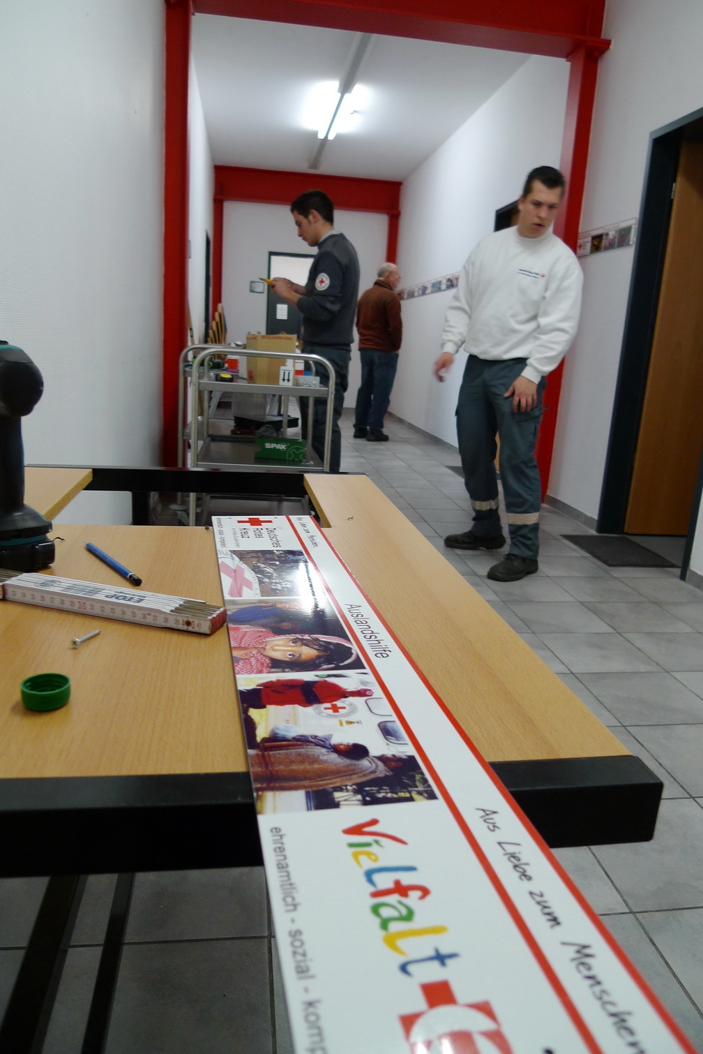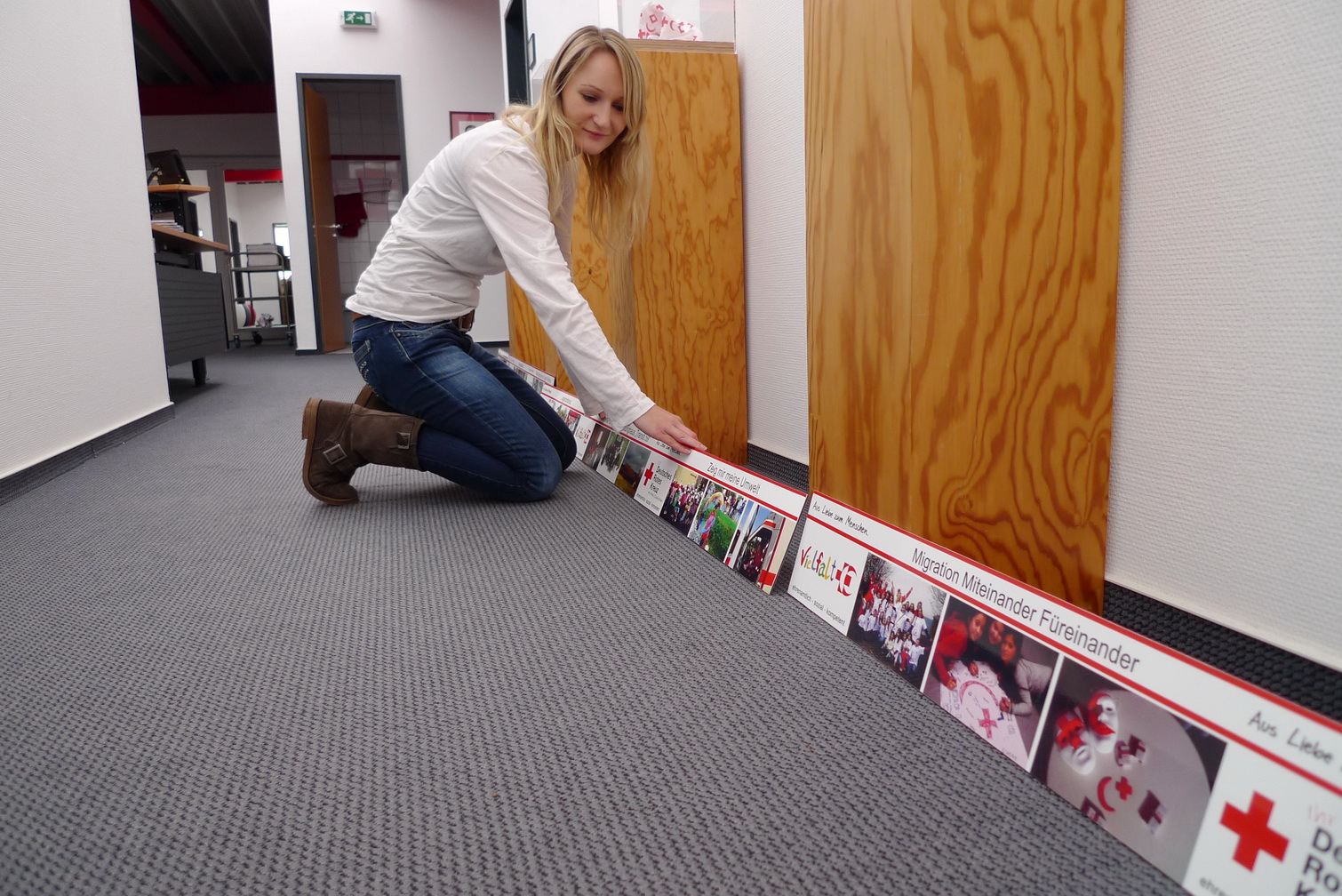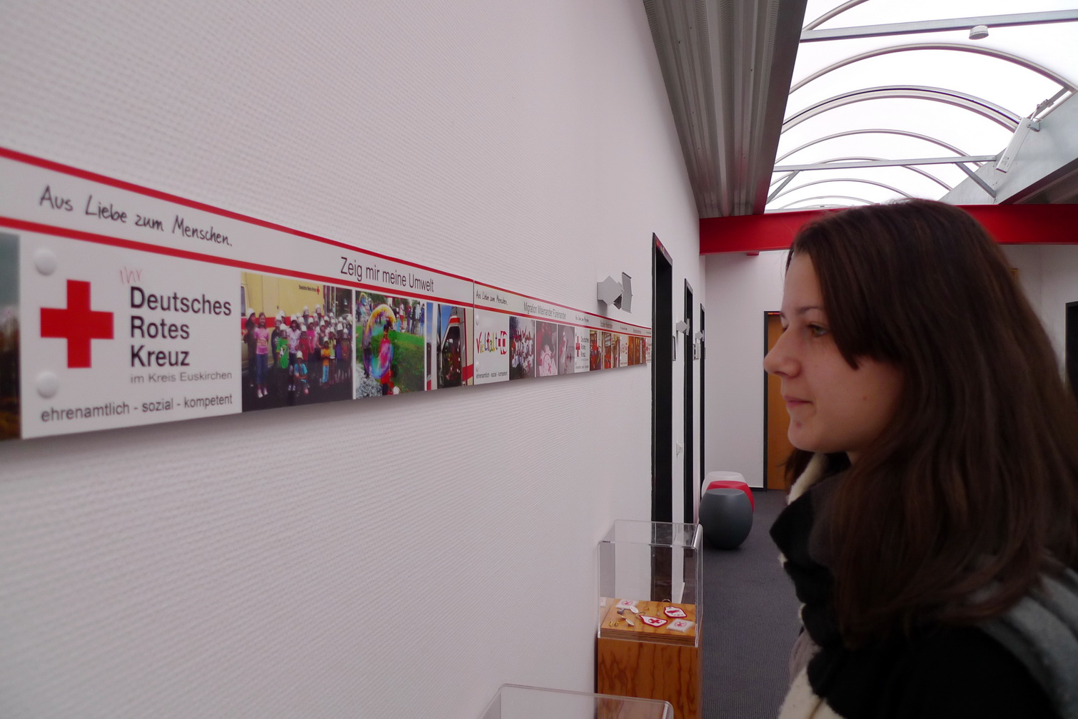 Vergangenen Freitag wurden die Flure des Rotkreuz-Zentrum "bebildert" - Eine Folge aus der Arbeit mehrerer Rotkreuzler, die feststellten, dass zum "Roten Kreuz in Euskirchen" reichlich viel dazu gehört. Um diese Vielfalt auch anderen verdeutlichen zu können, hängen nun einige Aufgabenbereiche des Roten Kreuzes mit je drei vertretenden Bildern in den Fluren. Eine kleine Entdeckungsreise, die nicht nur bei Besuchern den "Aha-Effekt" auslöst...