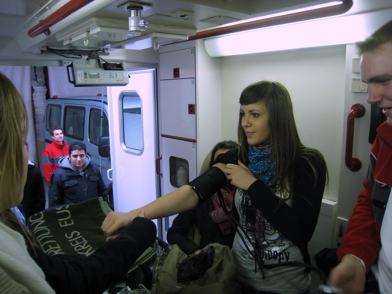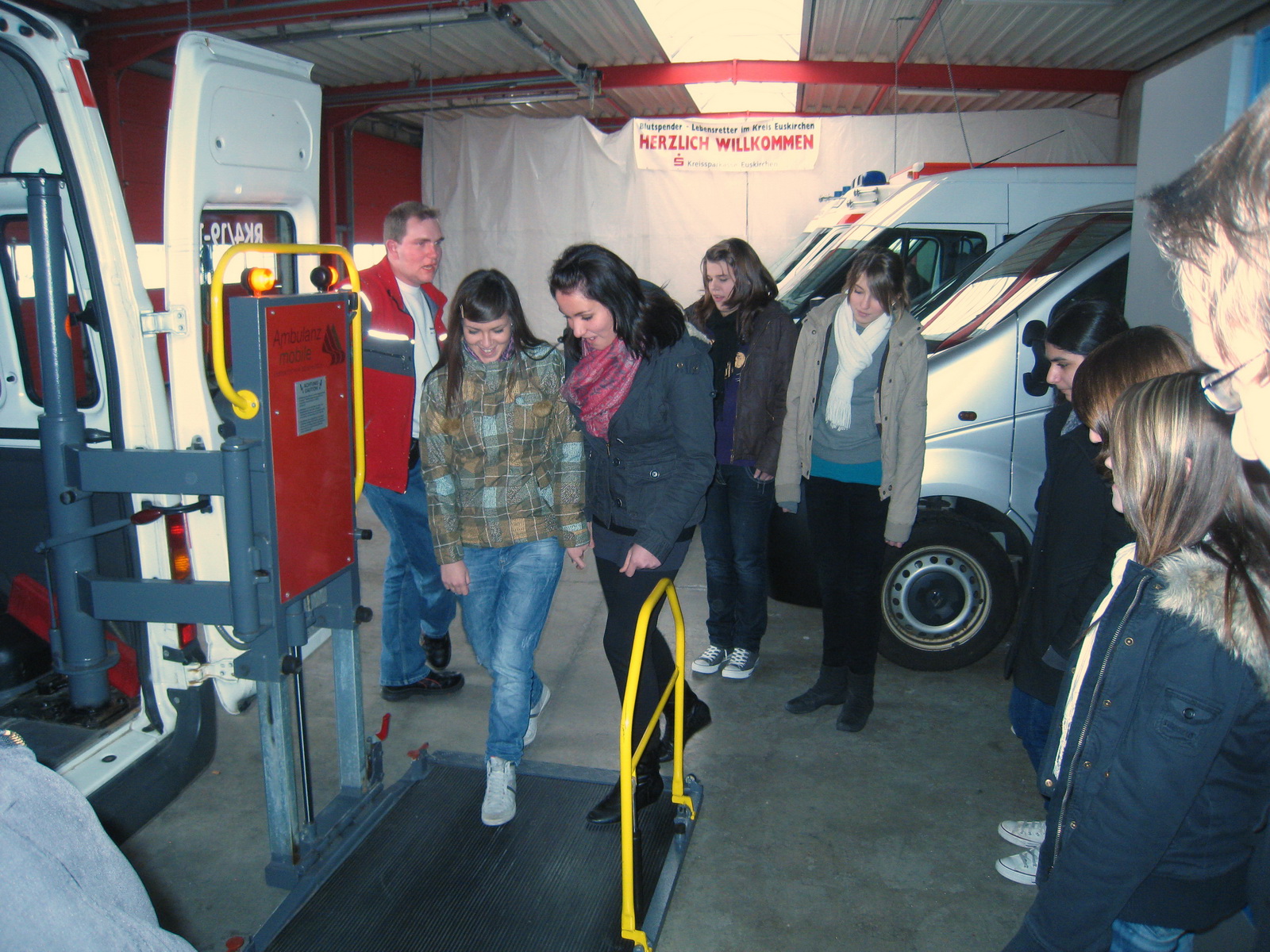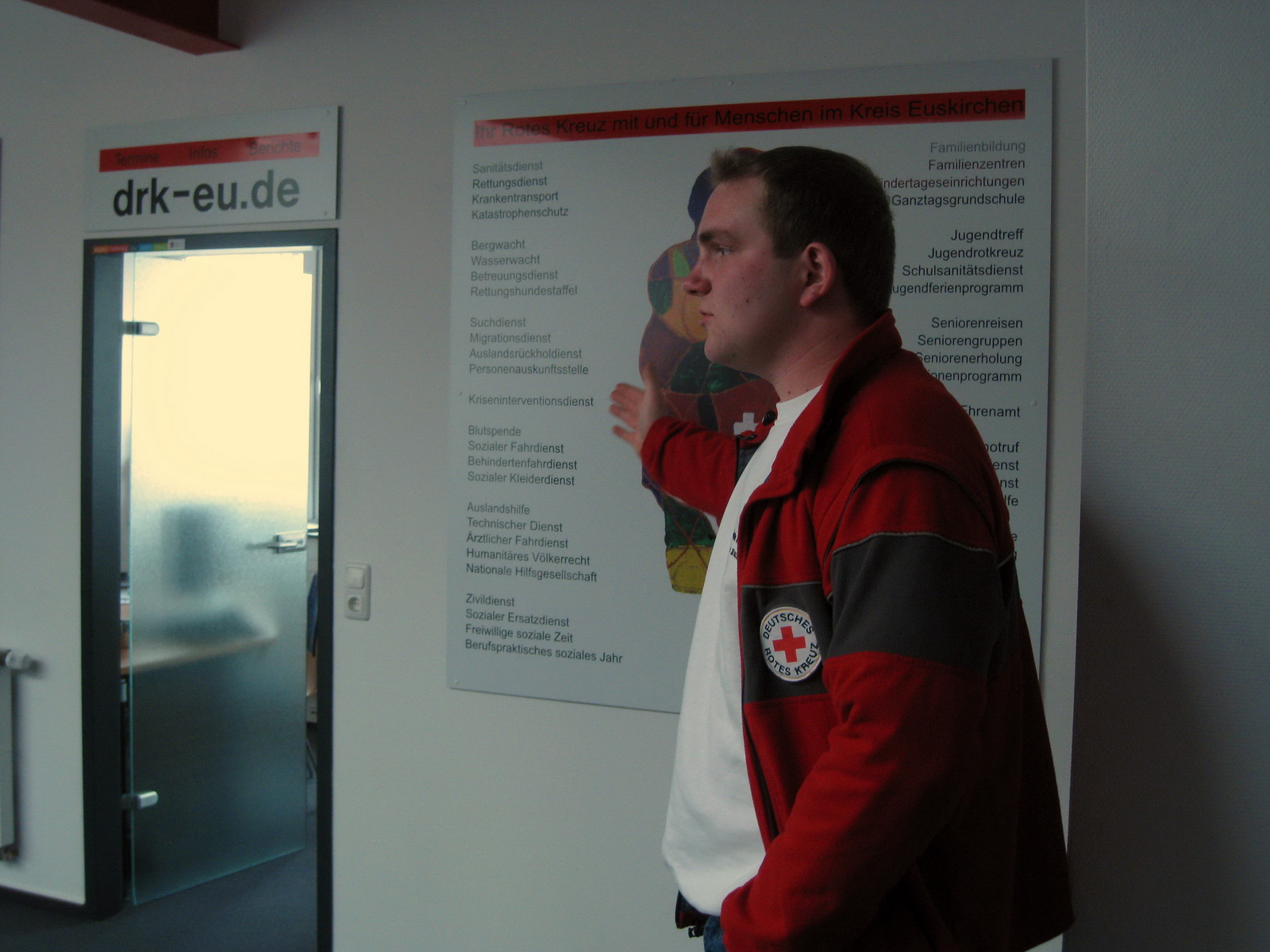 11 Schüler der Willi-Graf-Realschule Euskirchen besuchten heute im Rahmen der Praktikumsvorbereitung das Rote Kreuz in Euskirchen. Daniel Hermanns brachte den interessierten Jugendlichen die Arbeit der Rotkreuzler im Kreis Euskirchen theoretisch und auch praktisch näher.