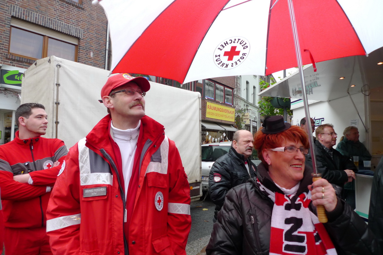 Bild DRK SP | Dennoch mussten später die Regenschirme hervorgeholt werden, was das Ganze jedoch nicht weniger bunt machte.