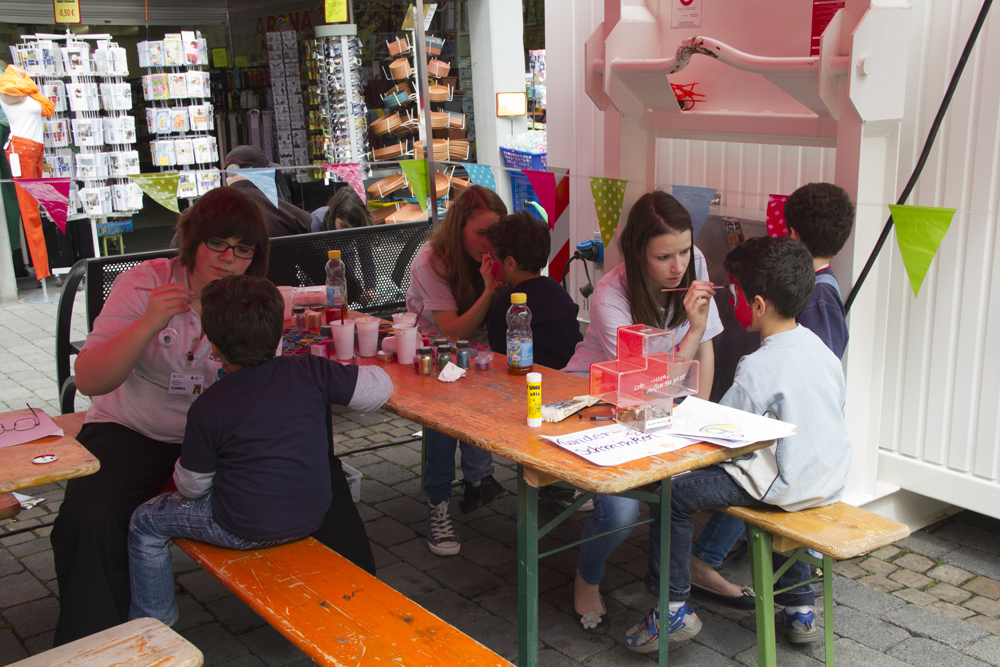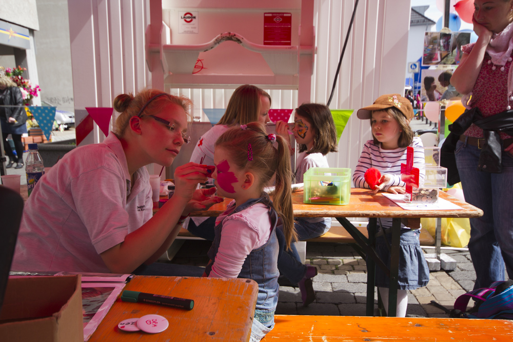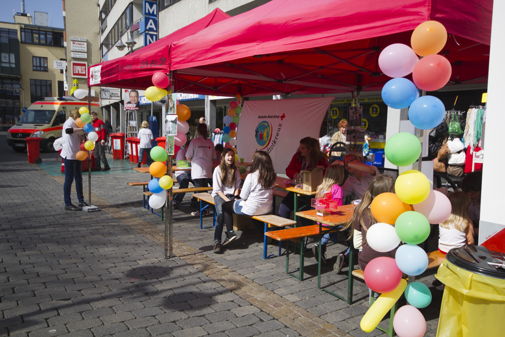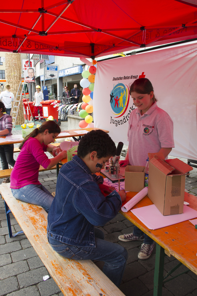 Viel Spiel und Spaß bietet das Jugendrotkreuz bei bestem Wetter in der Innenstadt in Euskirchen. Kinderschminken, Buttons, Karlo Klötzchen und vieles mehr sorgt für Spiel und Spaß bein Groß und Klein! Wir freuen uns auf noch mehr Besucher an unserem Stand!
