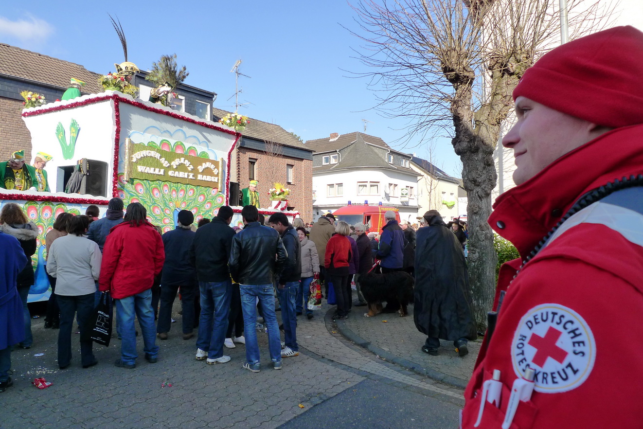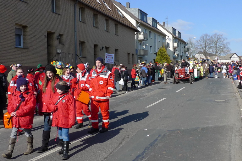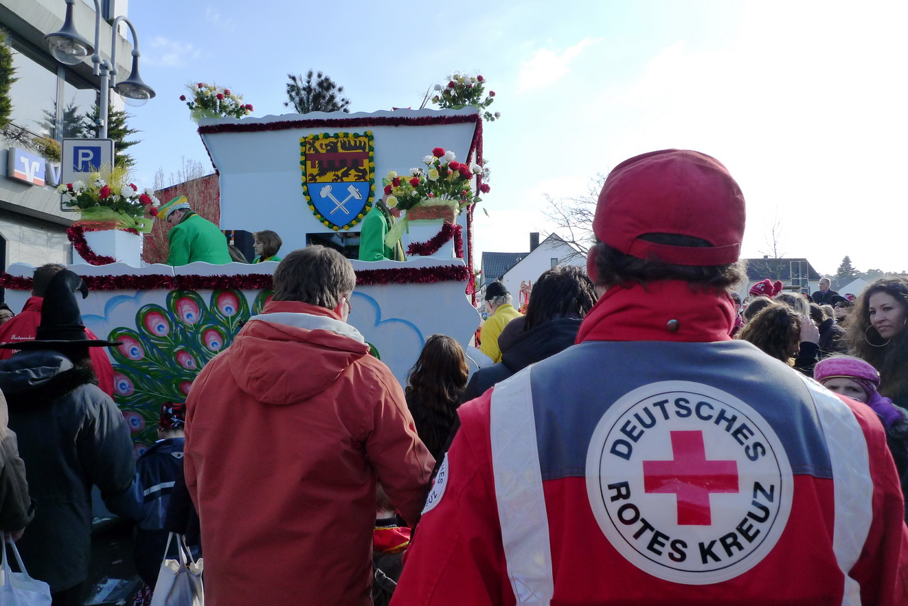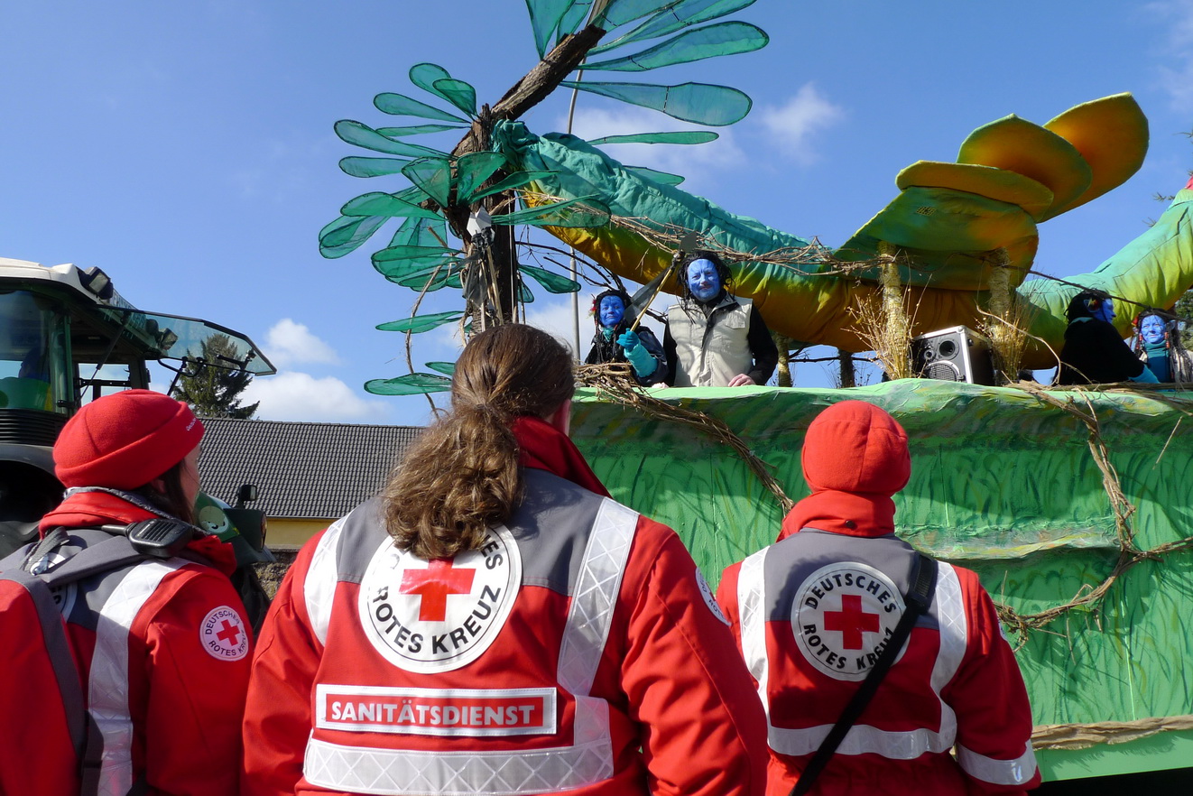In den vergangenen Tagen schlängelten sich unzählige Karnevalszüge durch die sonnigen Straßen der Städte und Dörfer im gesamten Kreis Euskichen. Zur Sicherheit oft auch von einigen Rotkreuzlern begleitet...