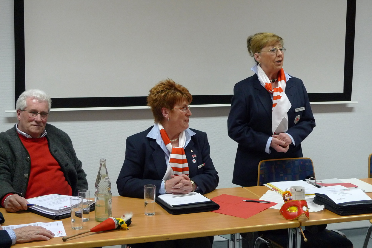 Dagmar Harder, die Vorsitzende des Rotkreuz - Ortsvereins, und Erwin Doppelfeld, der Rotkreuz - Kreisvorsitzende, begrüßten viele aktive Rotkreuzler auf der Jahresversammlung des Deutschen Roten Kreuzes in der Kreisstadt.