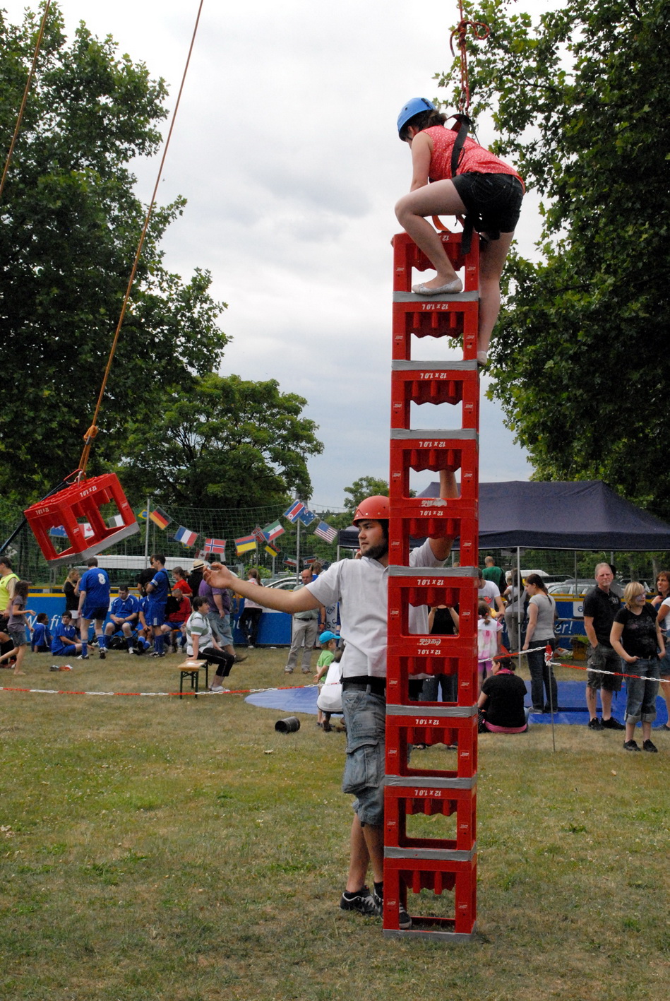 Am Sonntag wurde das Prinzip der Inklusion konsequent umgesetzt. So übernahmen behinderte Helfer die Aufgaben, die sie bewältigen konnten, etwa den ganztägigen Bon-Verkauf. „Das ist zwar anstrengend für sie, macht sie aber auch stolz“, so Froebus. Dicht umlagert war das Soccer-Spielfeld, wo aus behinderten und nicht-behinderten Spielern zusammengesetzte Teams um Tore kämpften.