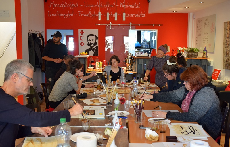 Teilnehmer des DRK-Workshops zur interkulturellen Woche lernten von Ismail Laghbaba die Kunst, Bilder mit des Deutschen liebsten Heißgetränks zu gestalten