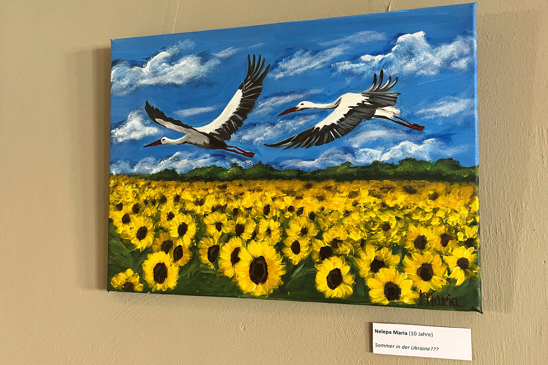 Schnell stand fest, dass auch der Kunstworkshop mit Liudmyla Krause ein fester Bestandteil dieser Treffen werden sollte. „Kunst ist die beste Psychotherapie“, stellte die Künstlerin und Kunstlehrerin während der Ausstellungseröffnung fest. Die Kinder seien am Anfang sehr verschlossen gewesen, doch über die Zeit hätten sie sich immer mehr geöffnet.