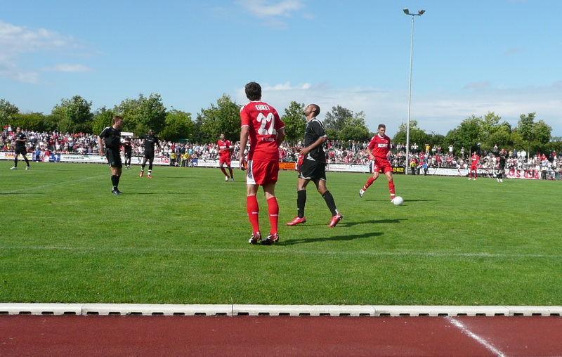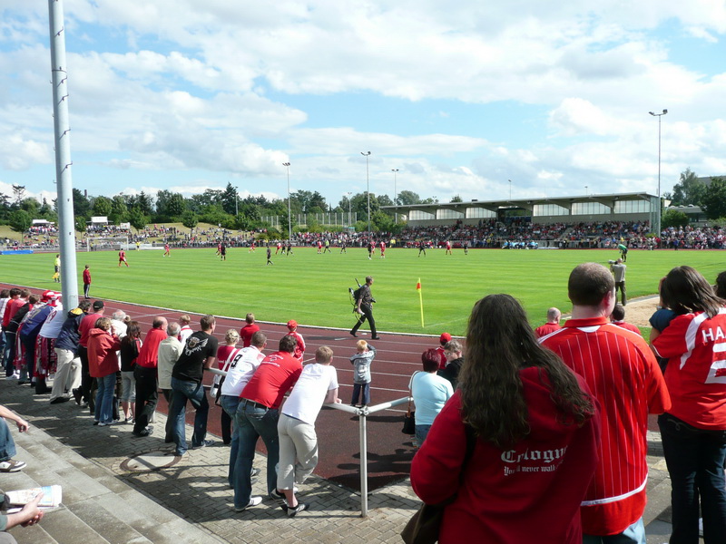 3000 Fußballfans, darunter rund 200 Gäste aus England, fanden am frühen Samstagnachmittag den Weg ins Stadion. Es herrschte fast Bundesliga-Feeling, wenn auch das Wetter mit einigen Regenschauern versuchte, dagegen zu halten.