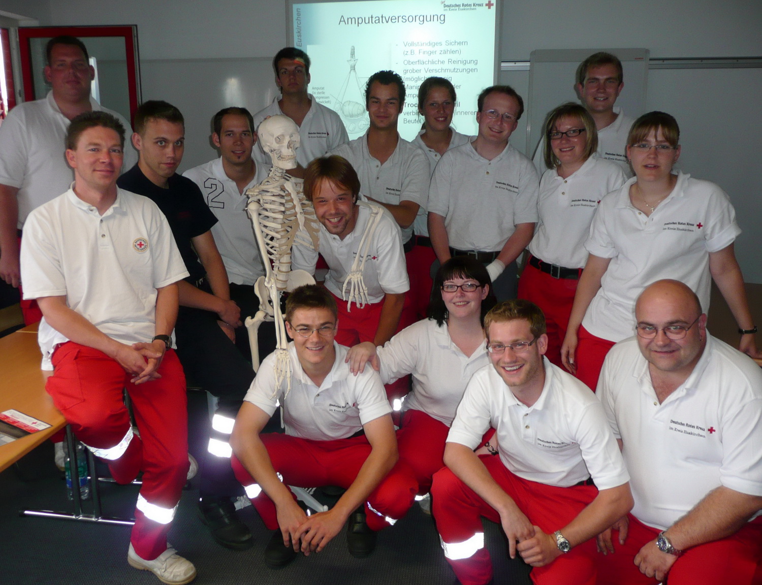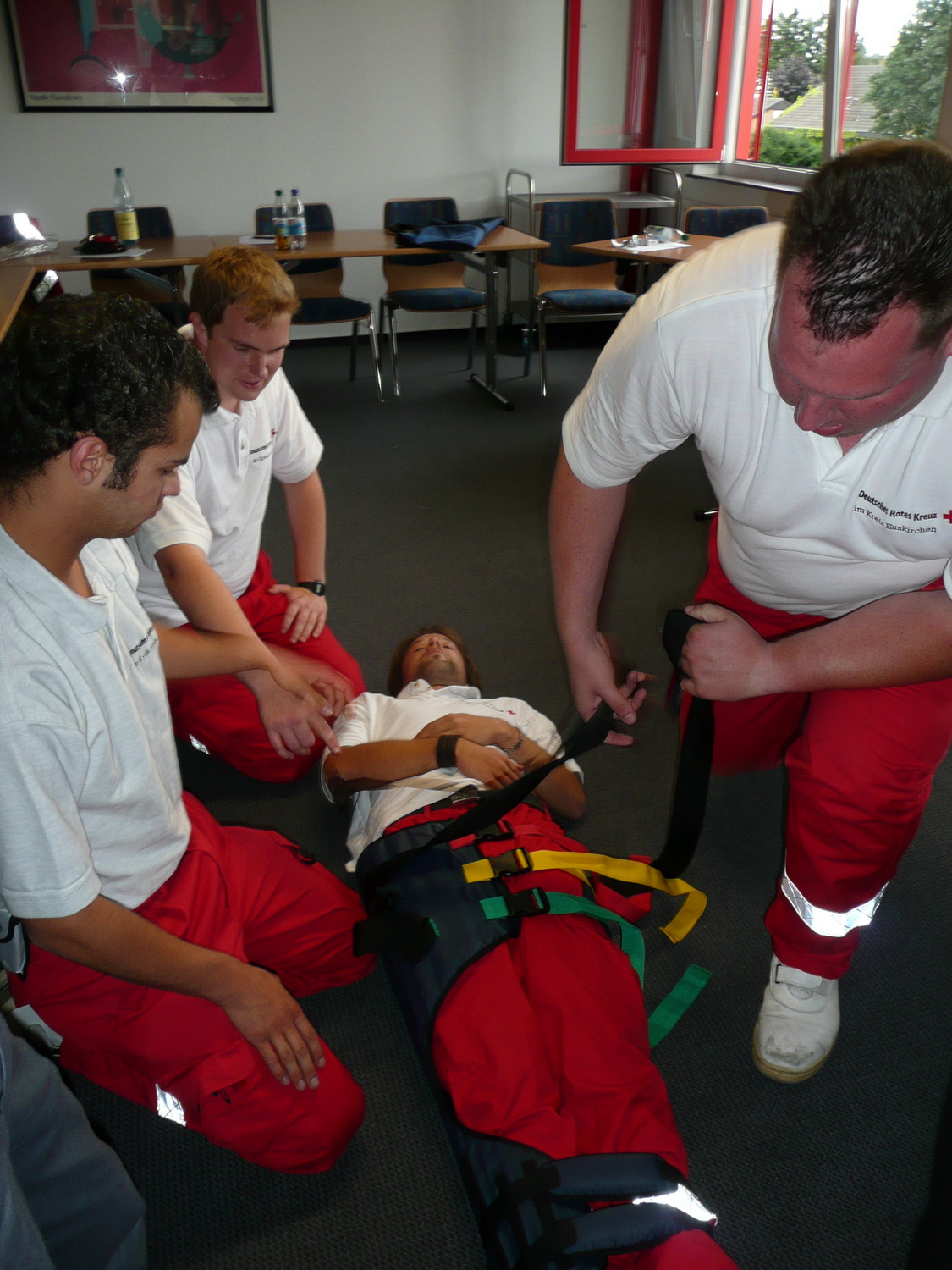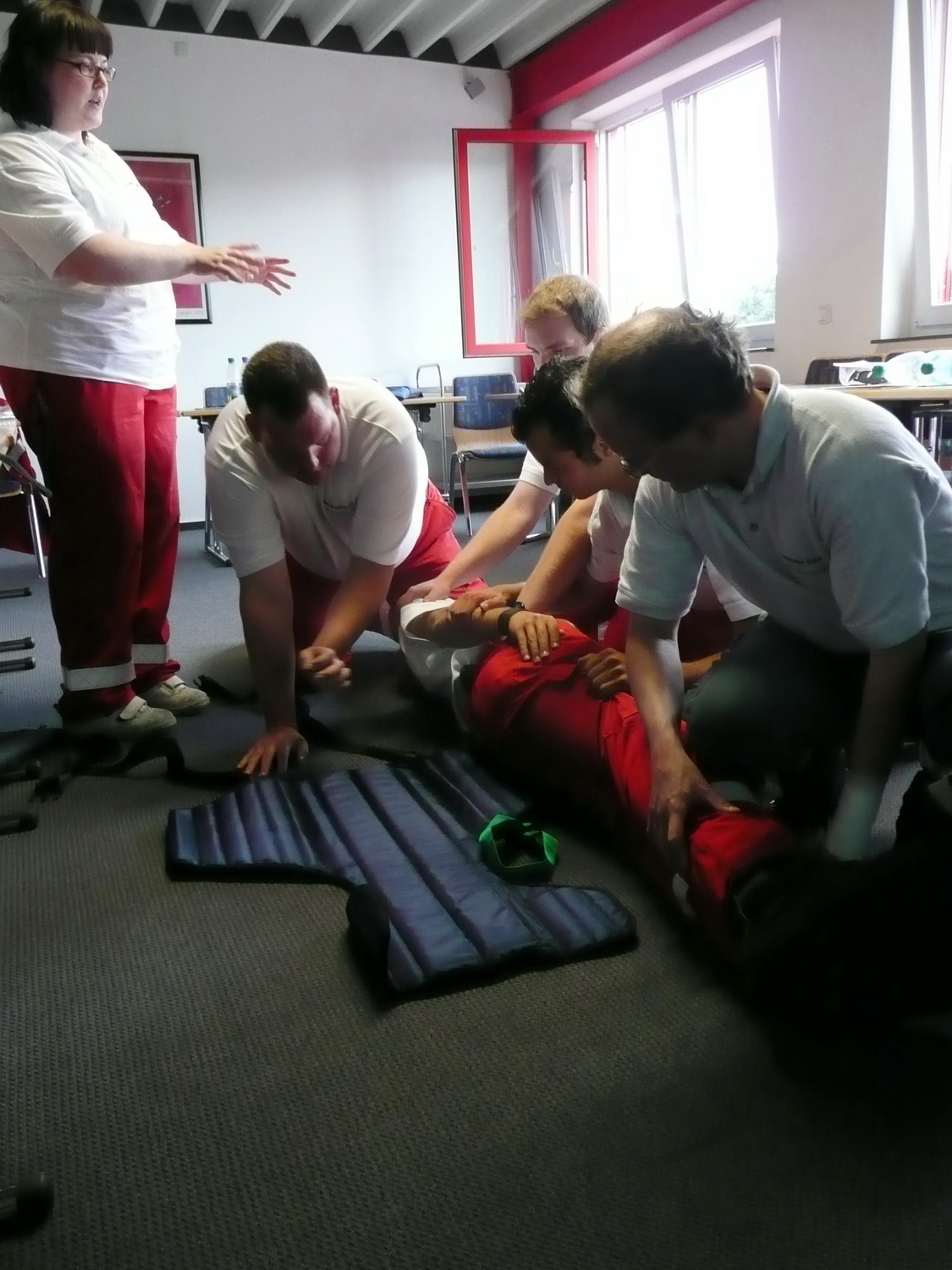 Im Rotkreuz-Zentrum in Euskirchen wird deshalb an jedem ersten Samstag im Monat eine Rettungsdienstfortbildung angeboten. Abwechselnd unterrichten die 20 Lehrrettungskräfte des Roten Kreuzes im Kreis Euskirchen neue Methoden und Standards im rettungsdienstlichen Einsatz. Neben der Theorie wird mit den Teilnehmer auch der praktische Einsatz geübt.