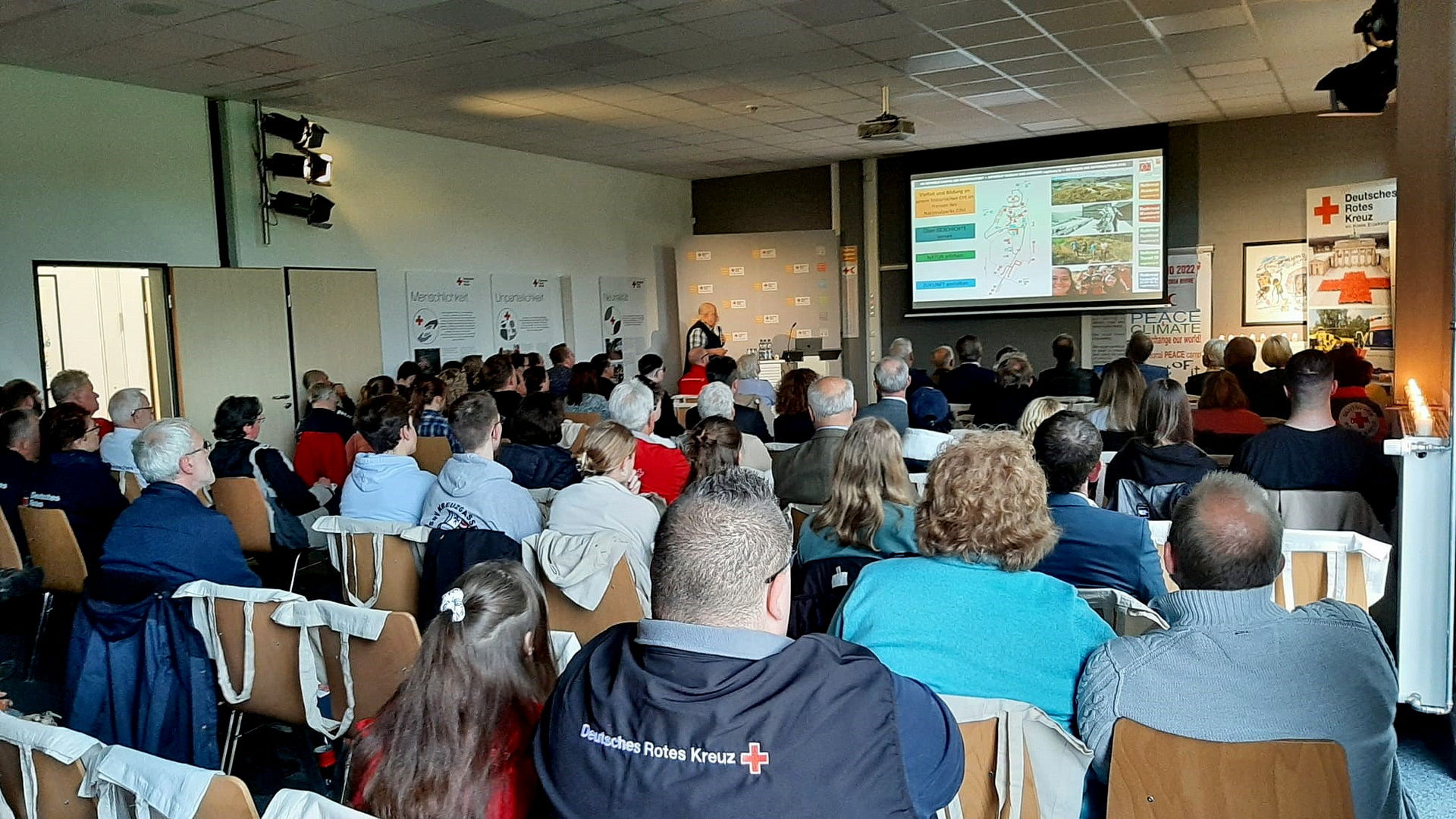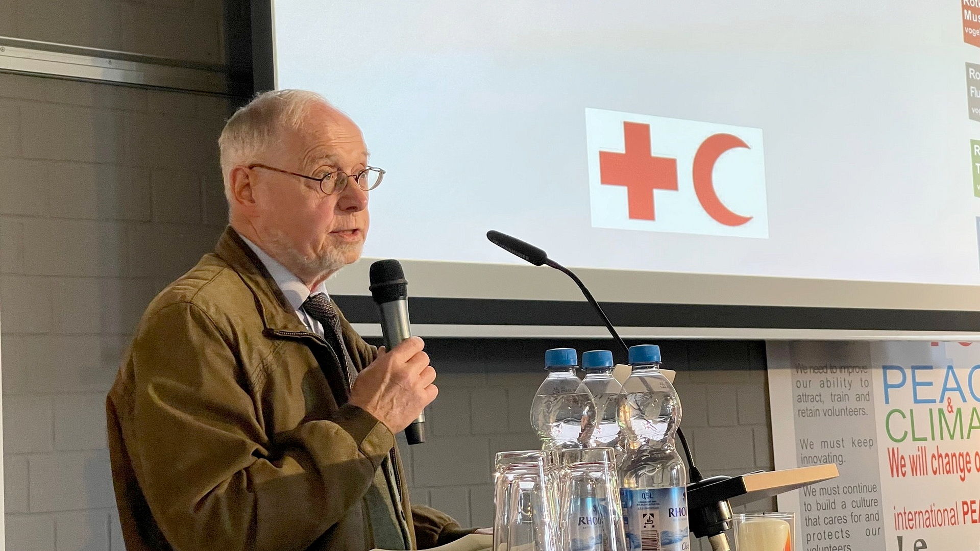 Nach den Corona-Einschränkungen gab es viel Neues zu berichten. So haben der DRK-Landesverband Nordrhein und der DRK-Kreisverband Euskirchen beispielsweise einen gemeinsamen Trägerverein gegründet. „Der »Rotkreuz-Museum vogelsang ip e.V.« wird die zukünftige Museumsarbeit langfristig sichern. Das Museum erhält dazu eine deutliche und dauerhafte Budgetstärkung und zwei hauptamtliche Stellen“, freut sich Zimmermann. In diesem Zusammenhang war Hans Schwarz, der Präsident des Rotkreuz-Landesverbands persönlich, zu Gast und richtete einige Worte an die rund 100 Anwesenden. Der Schleidener Bürgermeister Ingo Pfennings tat es ihm gleich.