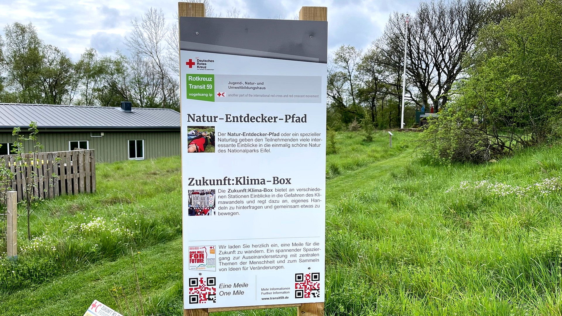 All die bisherigen in diesem Kontext entstandenen Projekte hat man nun in der „Meile für Zukunft“ („One mile for future“) verbunden - einem neuen, gekennzeichneten Spazierpfad über das Gelände von Vogelsang. Besucherinnen und Besucher können hier viel über die Herausforderungen und Gefahren der Zukunft erfahren. „Aber auch, was wir alle gemeinsam dazu beitragen können, die Zukunft positiv zu gestalten“ ergänzte der Museumschef stolz. Sie führt beispielsweise vorbei am „Friedenstisch“, dem „Friedenspfad“, dem „Tunnel of Visions“, dem „Grundsatzdenkmal“ und vielen anderen „Friedenscamp-Projekten“. Auf Tafeln mit QR-Codes am Wegesrand sind diese noch einmal detailliert erklärt.