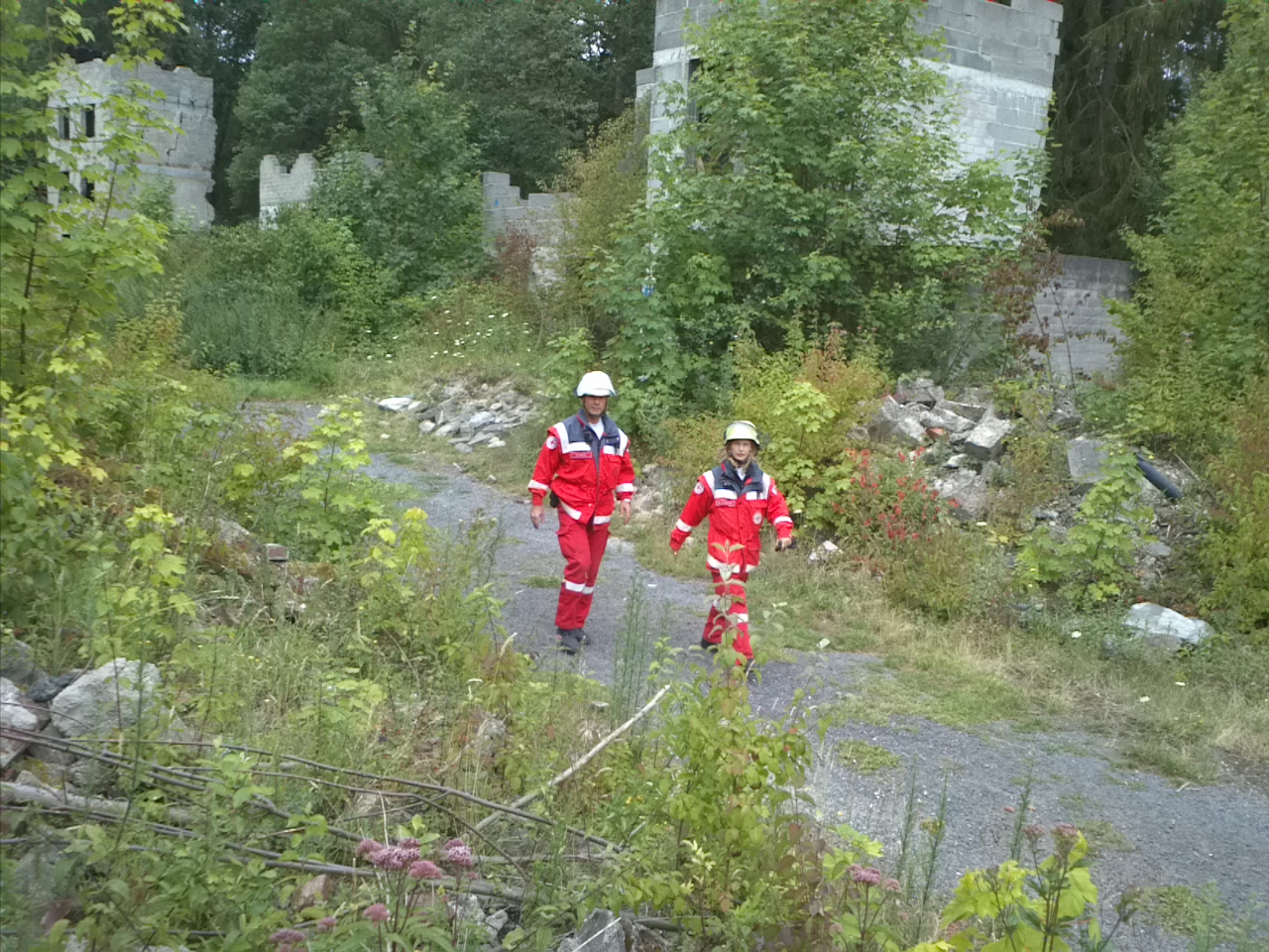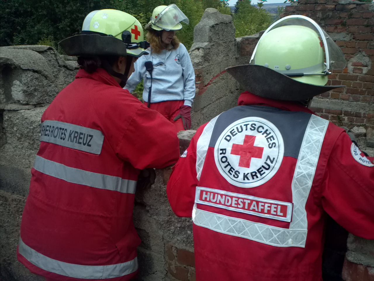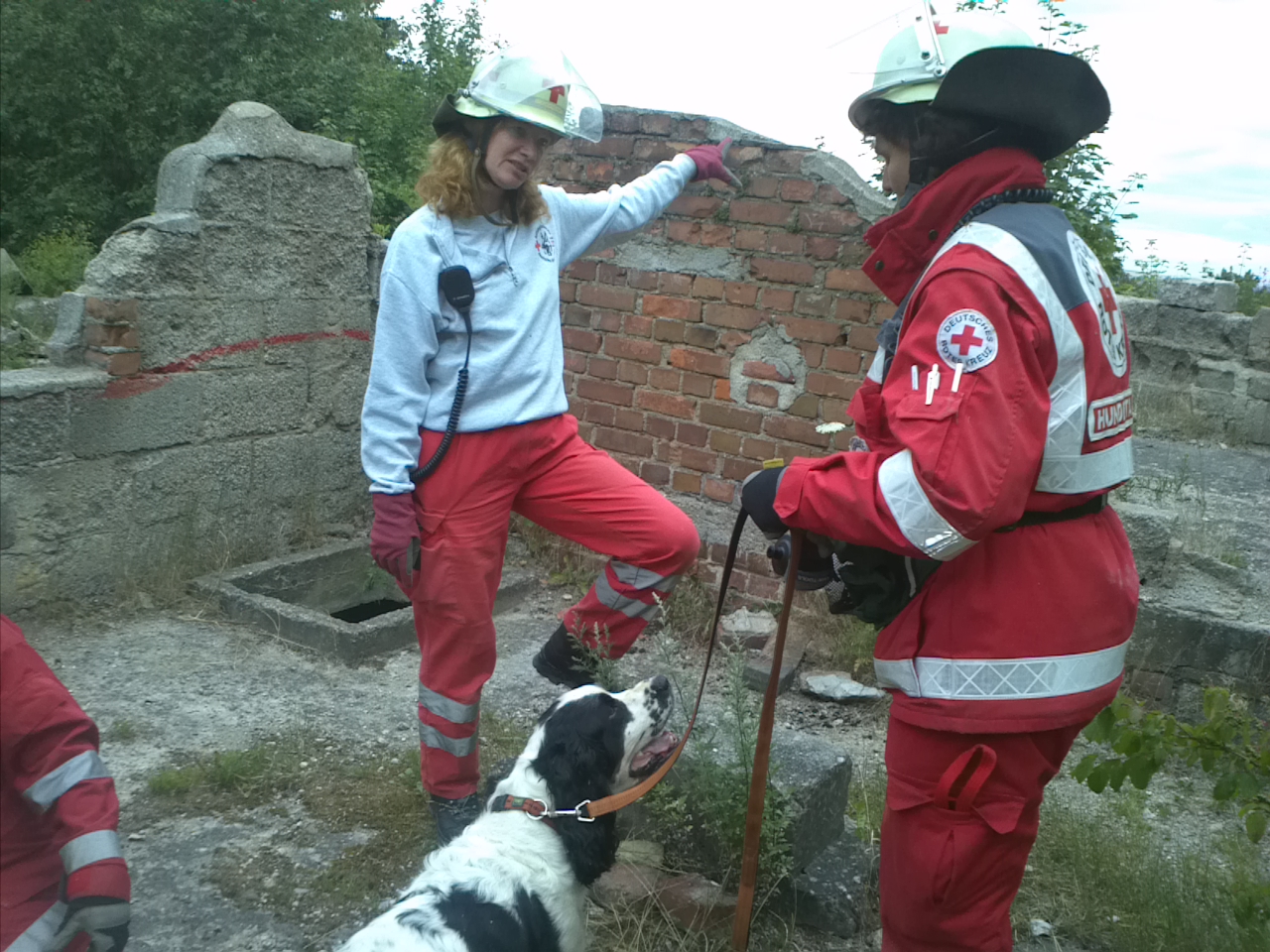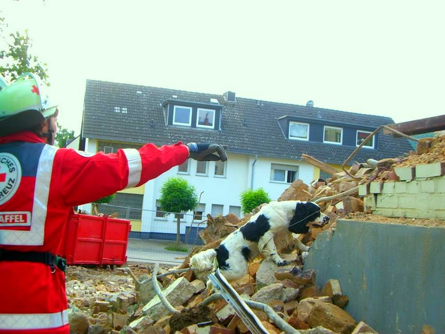 So bot sich den Mitgliedern der Rettungshundestaffel Kall am Mittwoch ein ideales Übungsgelände: ein Hausabriss in Gemünd-Mauel. In nahezu realistischer Atmosphäre konnten die Teams je nach Ausbildungsstand verschiedene Situationen trainieren. Dazu gehörte unter anderem das Bewegen auf unsicherem Gelände, das Aufspüren von Menschen in Treppenhäusern, verschüttenen oder in Räumen eingeschlossenen Menschen. Keine einfache und keine ungefährliche Aufgabe, denn ein Trümmergebiet birgt zahlreiche Gefahren, wie z. B. Glasscherben, ungesichterte Abgründe oder herabstürzende Trümmerteile. Doch die Hunde zeigten, dass auch in schwierigen Situationen auf ihre Nase und ihr Können Verlass ist.