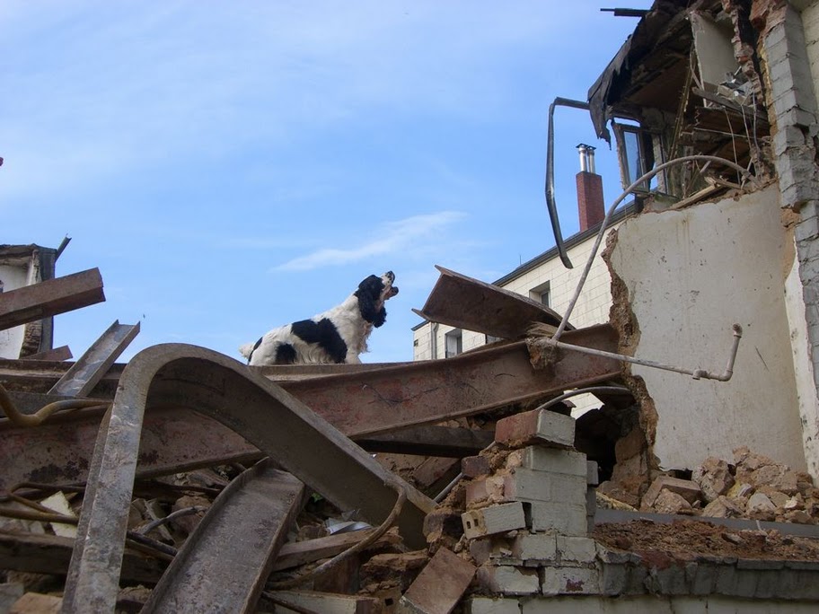 Gemünd/Ahrweiler - Wenn Menschen nach einem Hauseinsturz, z. B. entstanden durch eine Gasexplosion, verschüttet werden, sind Rettungshunde ein bewährtes Einsatzmittel. Sie können mit ihrer feinen Nase auch tief verschüttete Menschen immer noch wittern. Zur Ausbildung zum "Trümmersuchhund" bedarf es einer intensiven Ausbildung und einer engen Bindung zwischen Hund und Hundeführer.