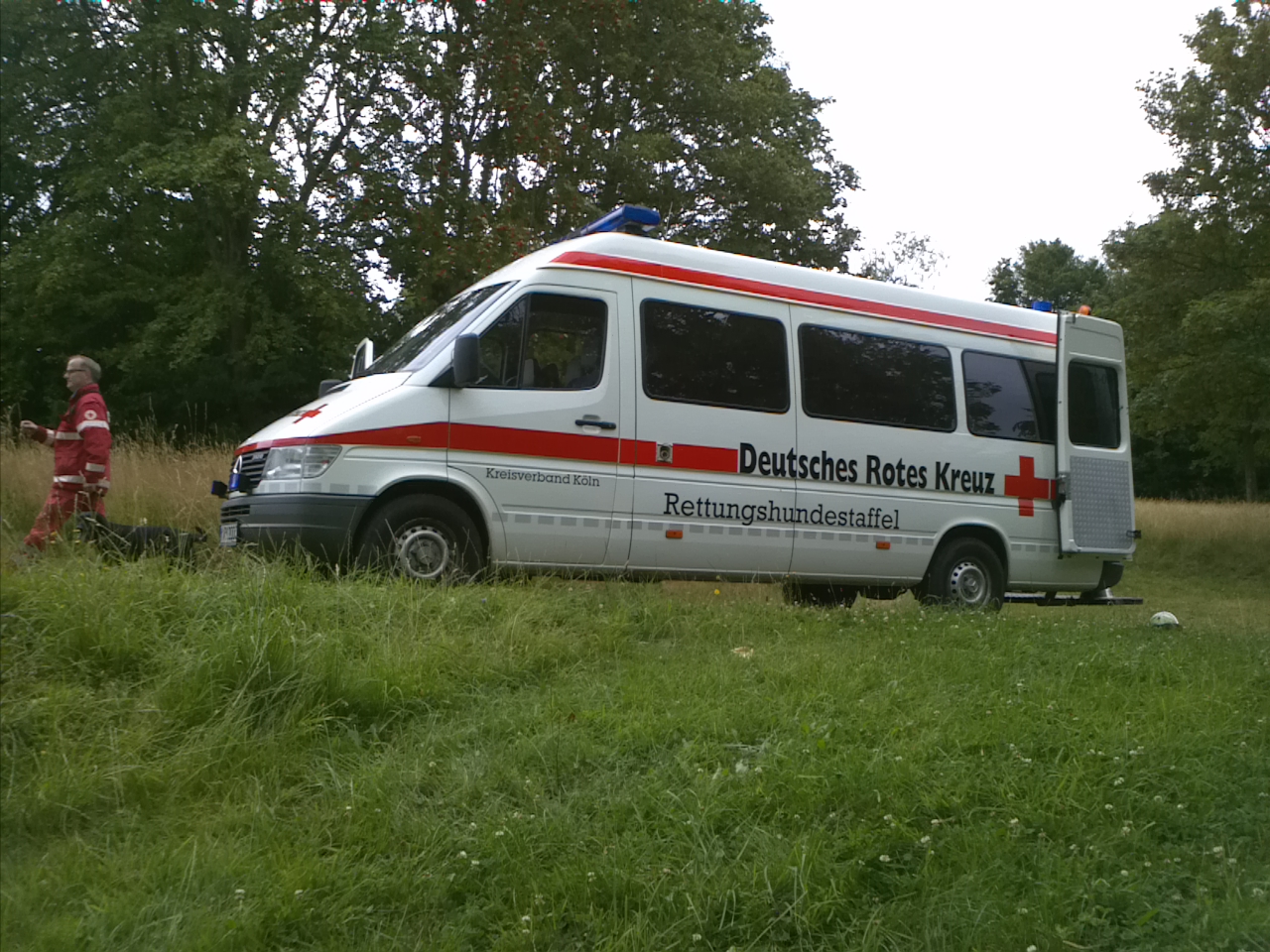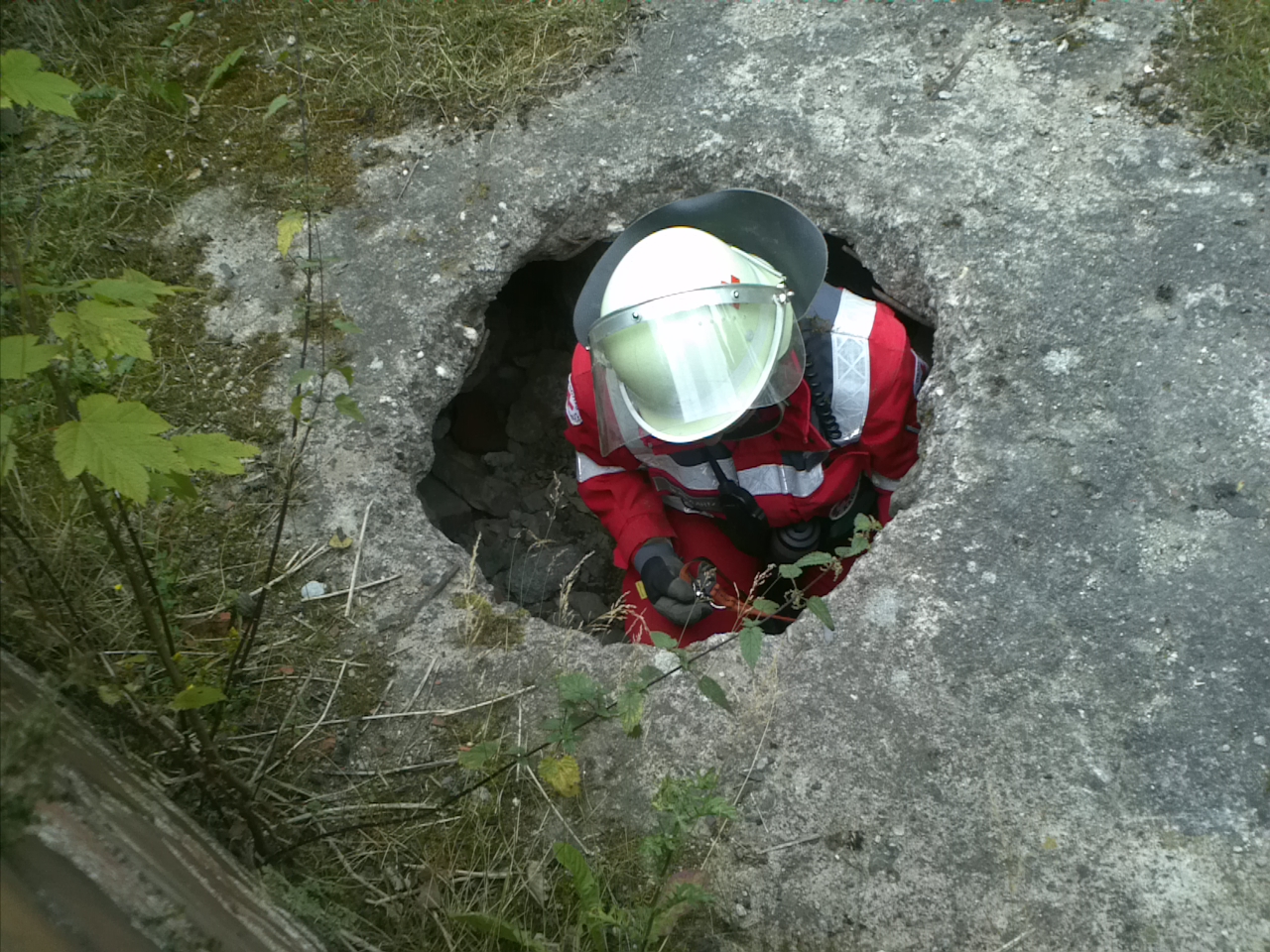 Aber, ob auf der Treppe sitzend oder auf einem Stuhl stehend: die Hunde ließen sich nicht beirren und zeigten sehr schön, was es bedeutet, die Nase einzusetzen. Am Nachmittag wurde dann vermehrt in Häusern, Kellerräumen und unterirdischen Verstecken trainiert. Hierbei kommt wieder das enge und gute Verhältnis zwischen Hund und Hundeführer zum Tragen, denn gerade bei unterirdischen Verstecken ist es oft schwierig, die genaue Lage der Versteckperson zu bestimmen. Der Hund muss versuchen, die Witterungsquelle so nah wie möglich zu lokalisieren, um im Ernstfall den Hilfskräften die Fundstelle sicher und präzise anzuzeigen.
