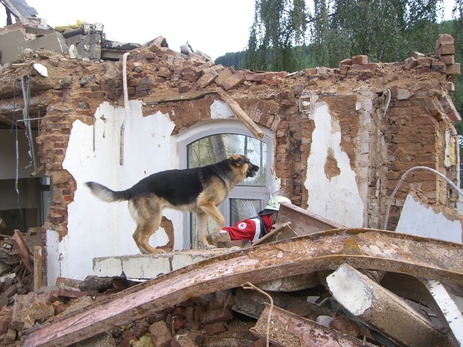 Güdderath - Auf der Suche nach verschütteten Personen können Rettungshunde ein effektives Einsatzmittel sein. Neben den Flächensuchhunden, die ausgebildet werden, um vermisste Personen in z. B. unwegsamem Wald- und Wiesengelände aufzuspüren, kann die Rotkreuz-Rettungshundestaffel im Kreisverband Euskirchen über einsatzfähige Rettungshundeteams für den Bereich der Trümmersuche verfügen.
