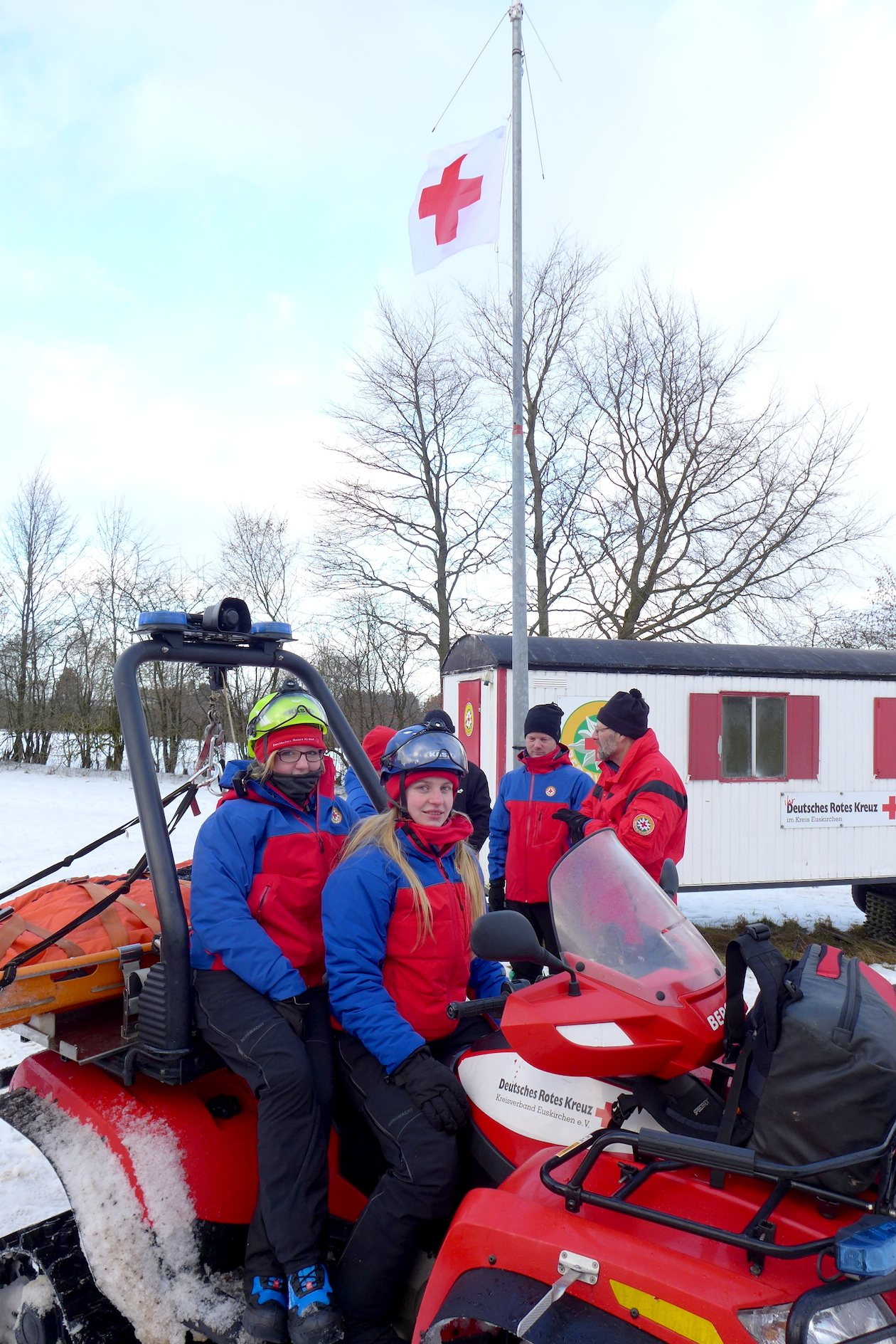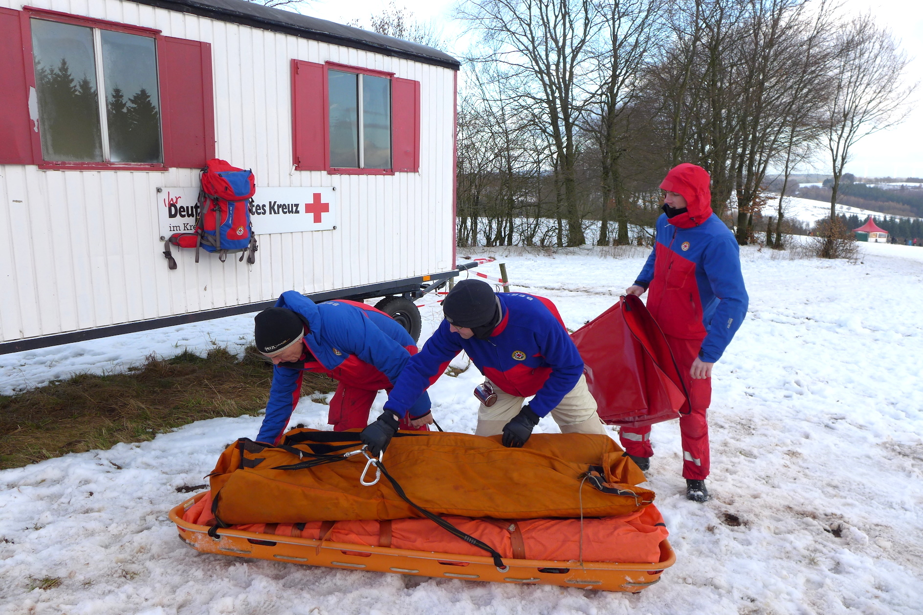 Im Wintersportgebiet Udenbreth trafen sich am Sonntag die Einsatzkräfte der Rotkreuz-Bergwacht zur gemeinsamen Fortbildung. Die fünfzehn Teilnehmer für das Wintertraining kamen aus dem Kreis Düren, aus dem Oberbergischen Kreis und aus dem Kreis Euskirchen.
