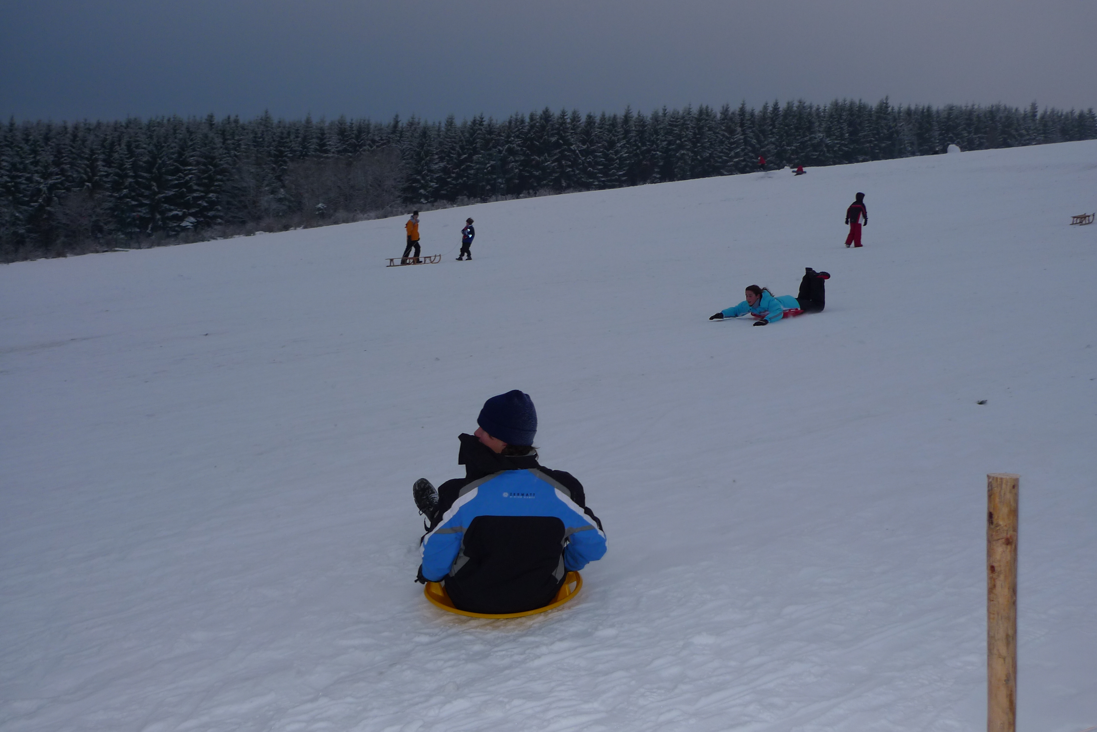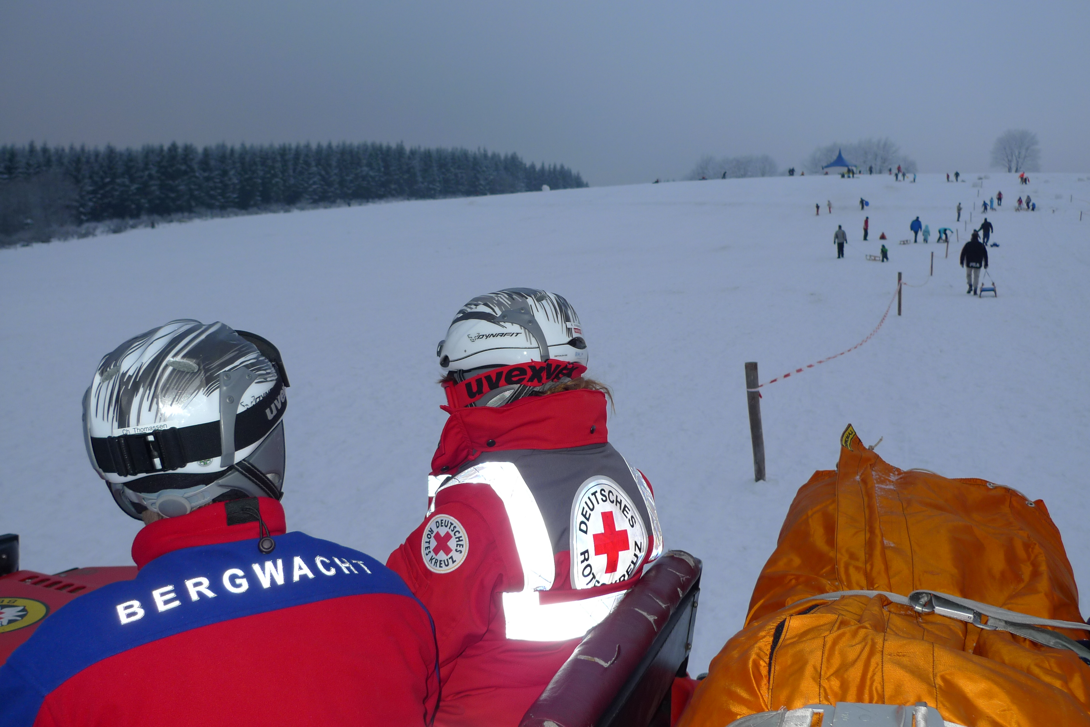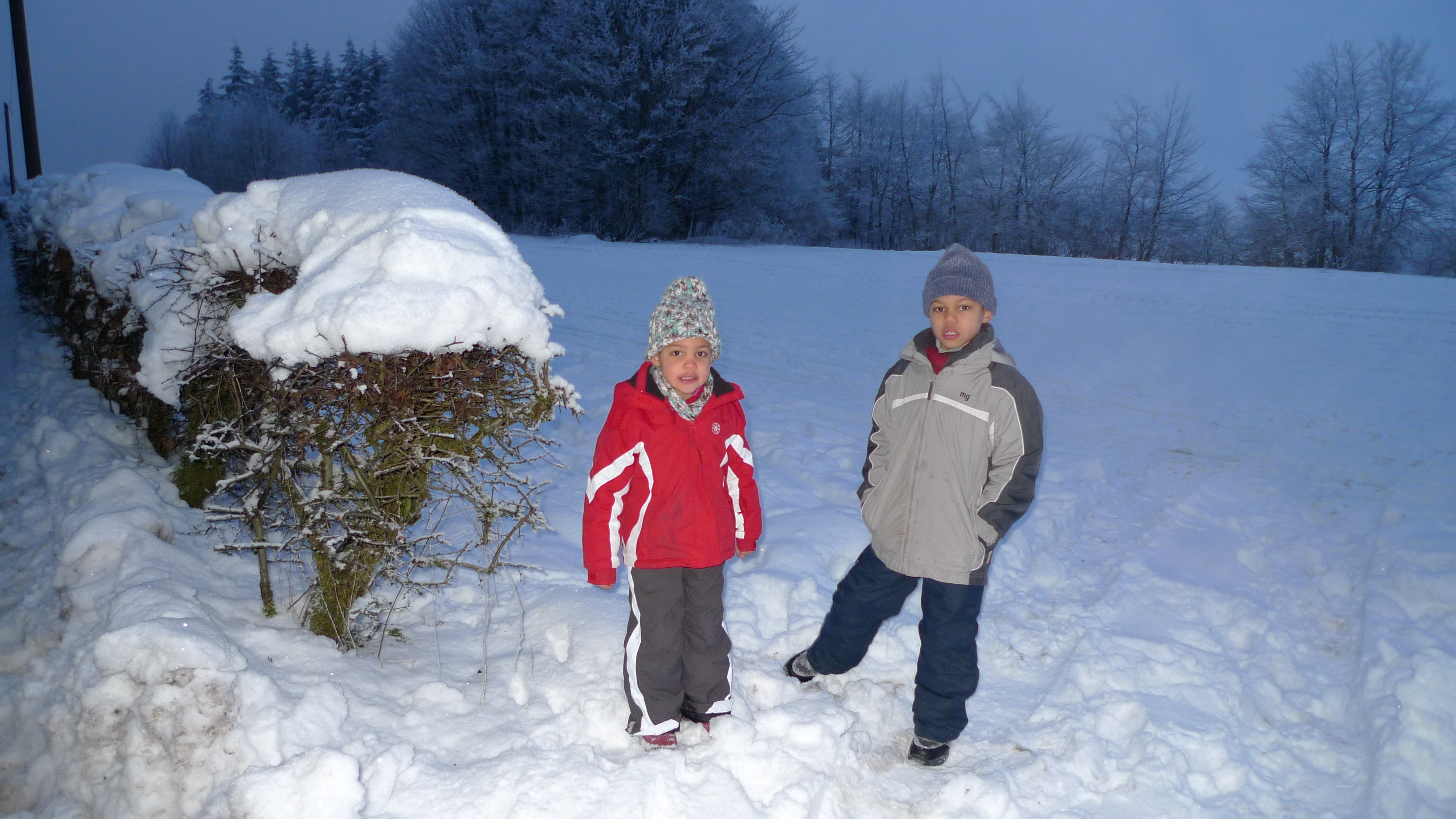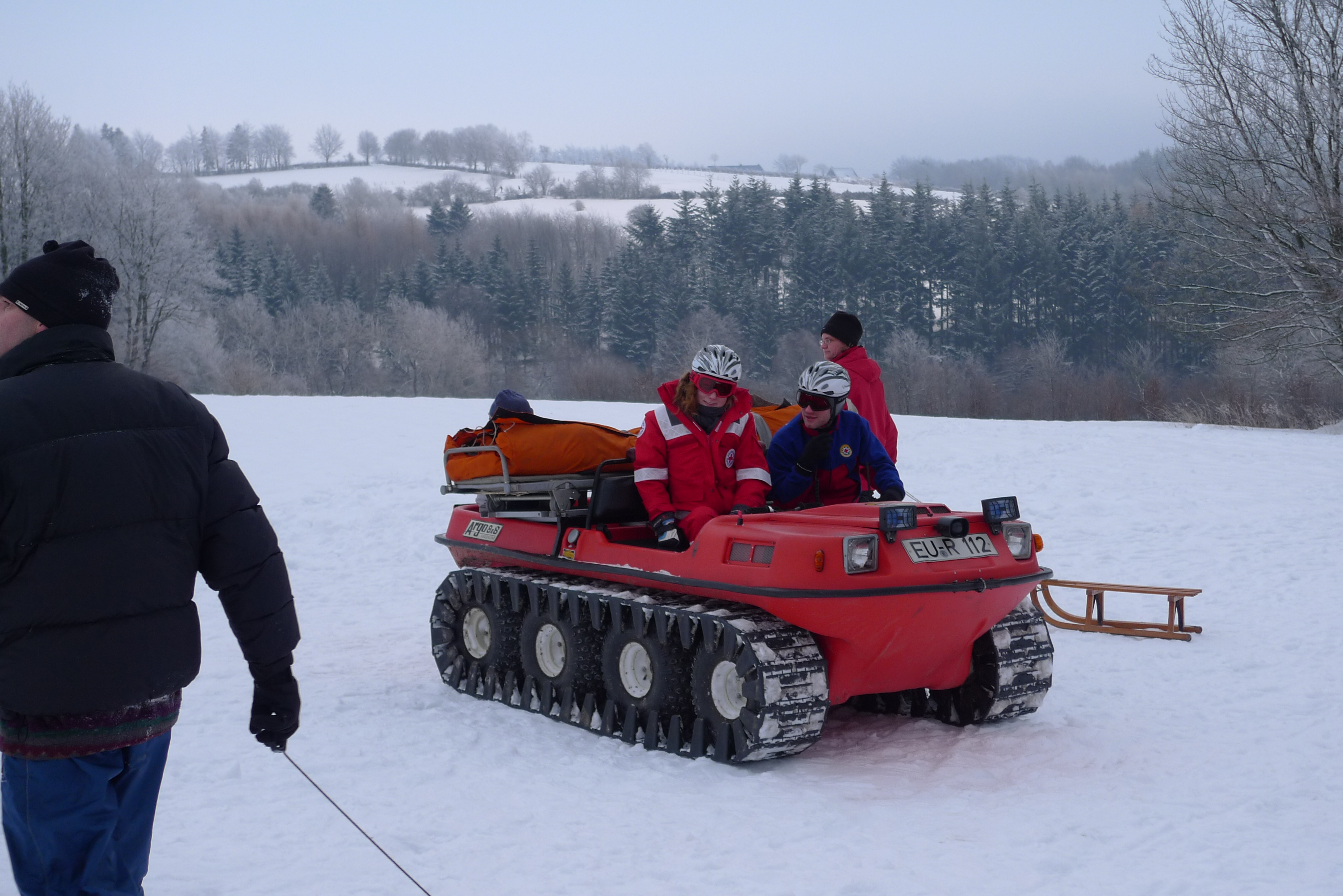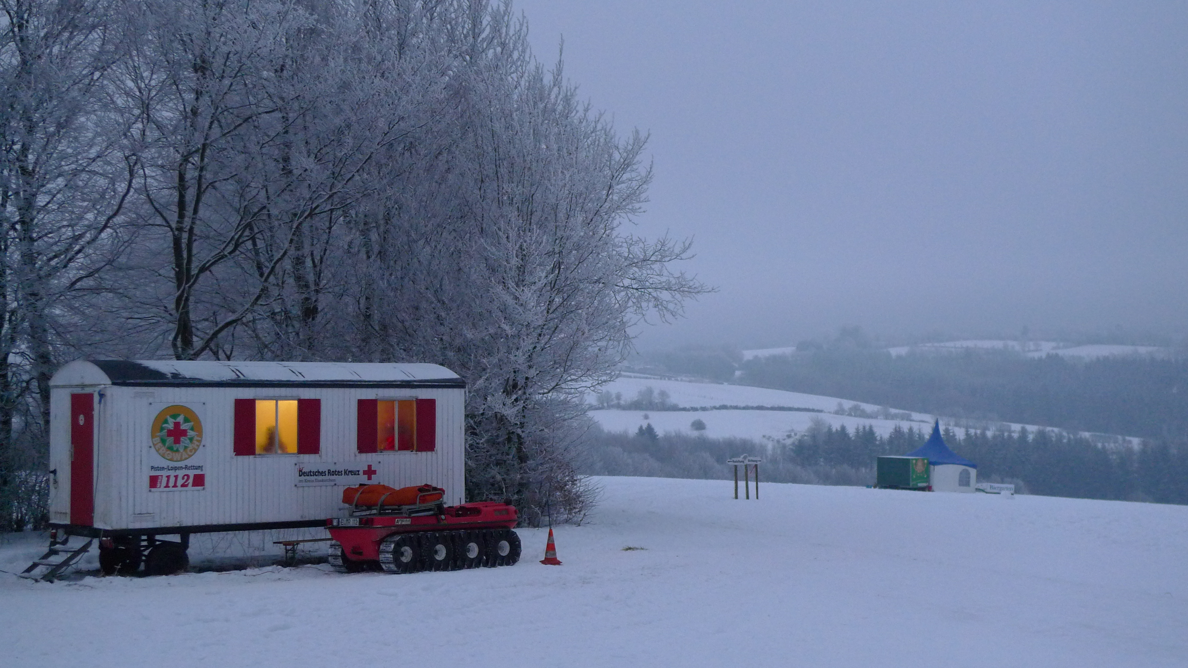 Das war ein schöner Ausflug in den Schnee. Wir waren mit unserem Opa bei der Rotkreuz-Bergwacht in Hellenthal-Udenbreth. Da oben liegt ganz schön viel Schnee, und es ist auch ziemlich kalt.