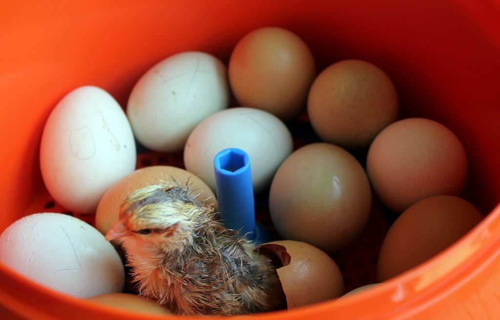 Das spannendste allerdings ist für alle das „Brutprojekt“. Auf den errechneten Tag genau nach 21 Tagen entdeckten die Pänz im ersten Ei einen feinen Riss. Der sorgte für große Aufregung. Endlich, nachdem sie sich drei Wochen lang um die Eier im Brutkasten gekümmert und die Tage abgezählt hatten, würde das erste Küken schlüpfen. Doch, so oft sie auch nachsahen, das kleine Wesen ließ sich Zeit. Zwar wurde der Riss größer, aber das Küken war auch noch nicht geschlüpft, als es Zeit war, nach Hause zu gehen. Eines war klar, das hatten die Pänz gelernt: Helfen darf man den Küken, die während des Schlüpfens noch mit dem Eidotter verbunden sind, nicht. Würde es in der Nacht passieren?