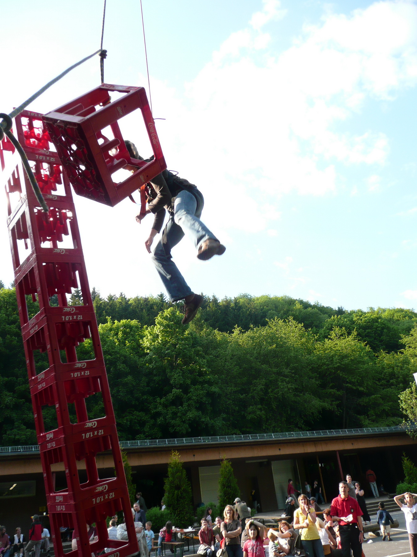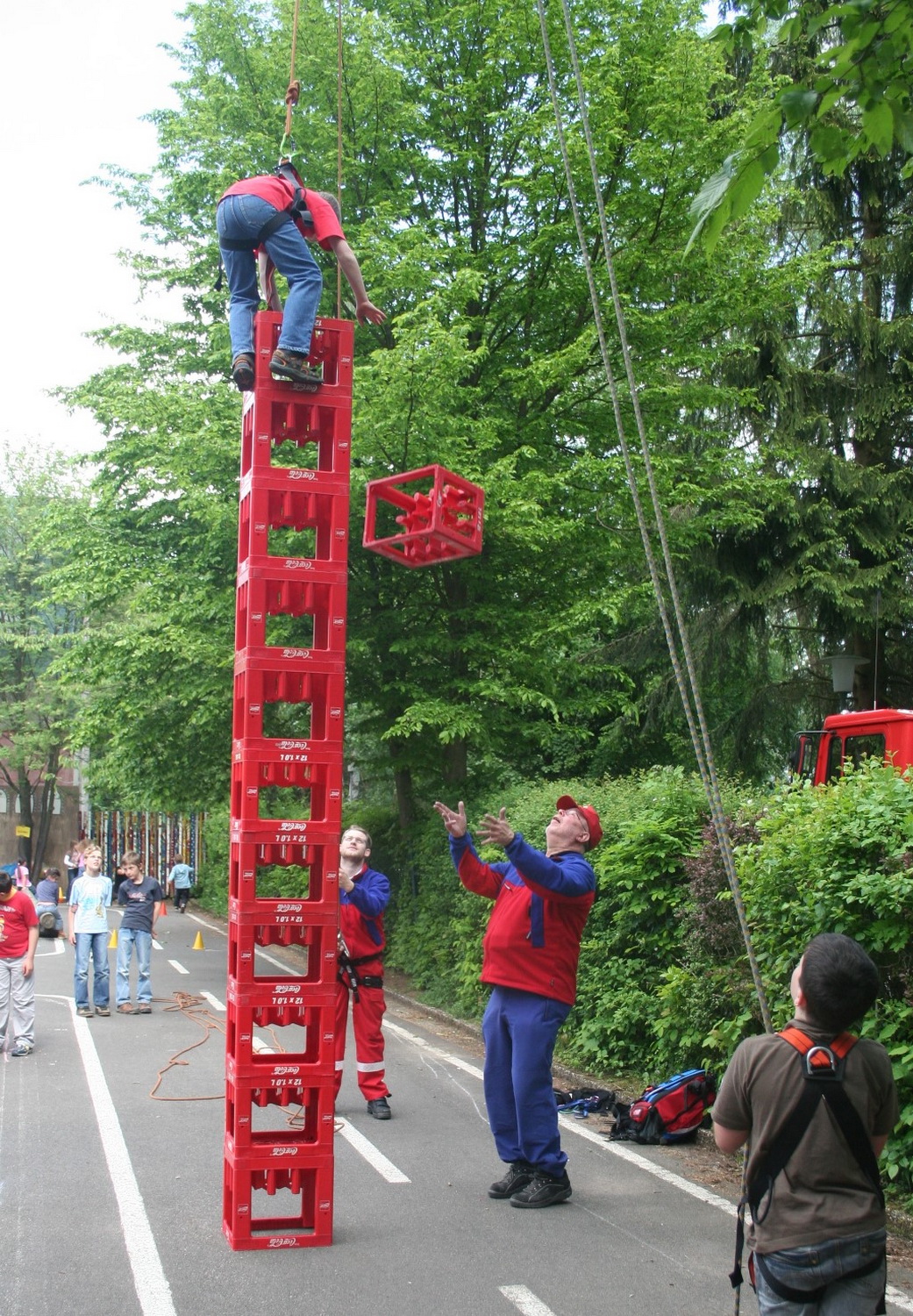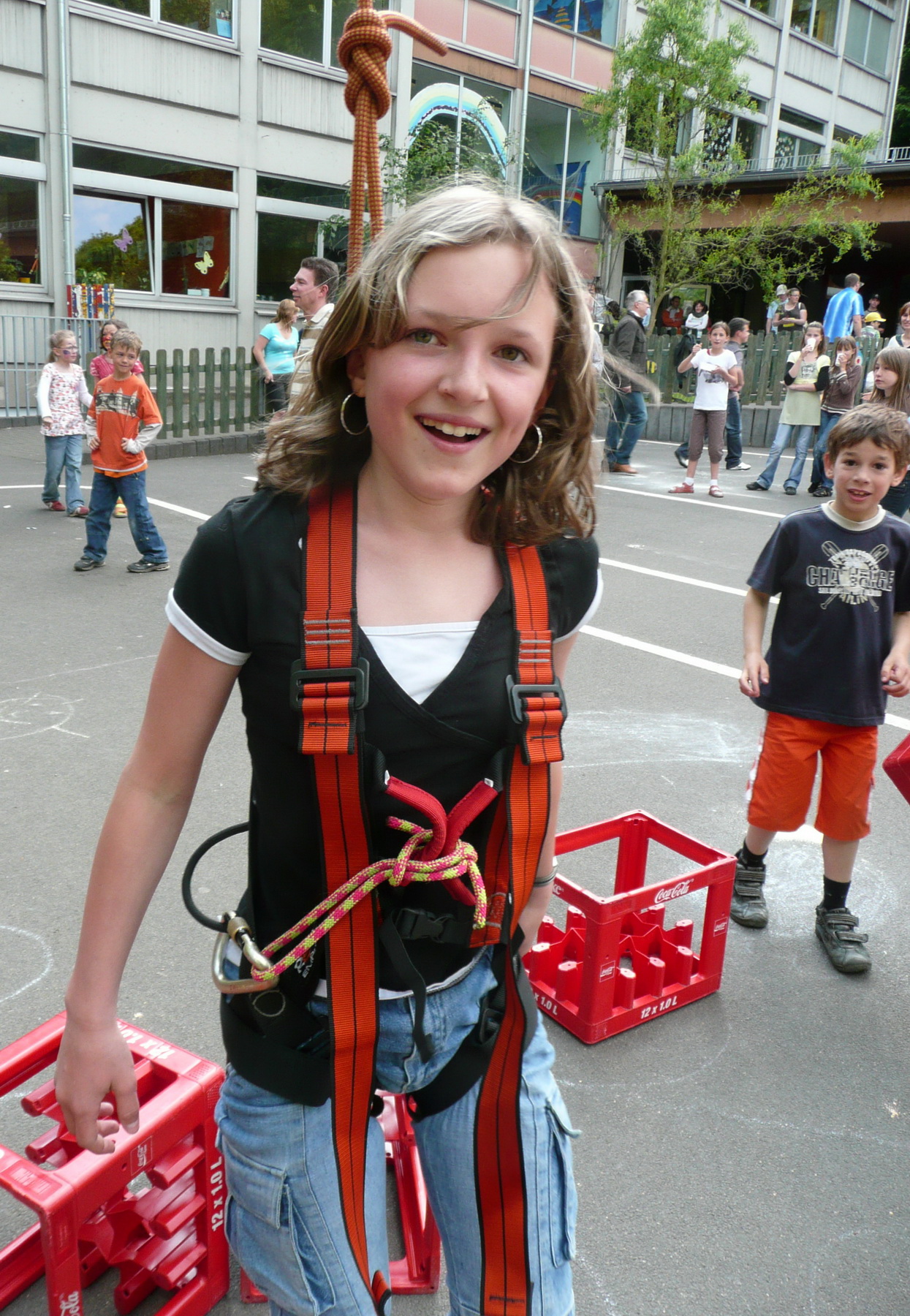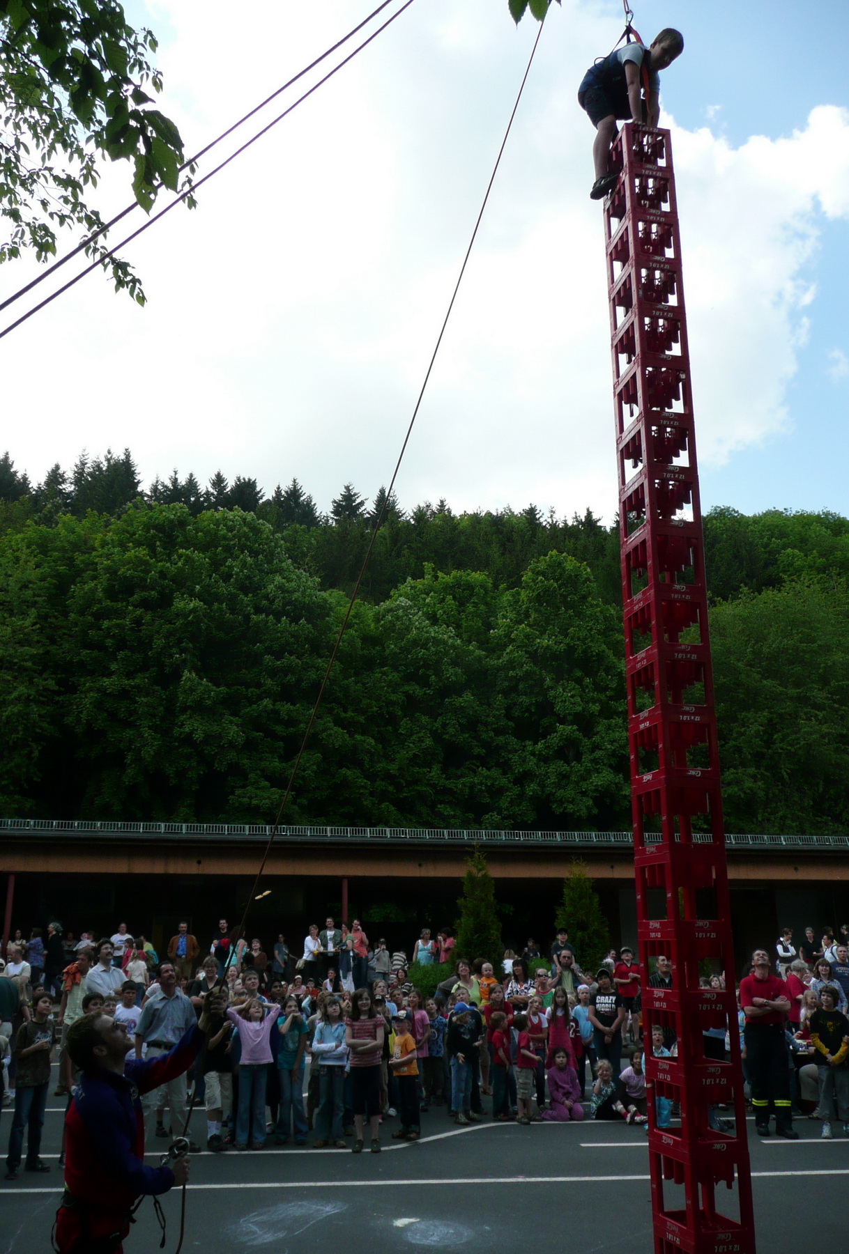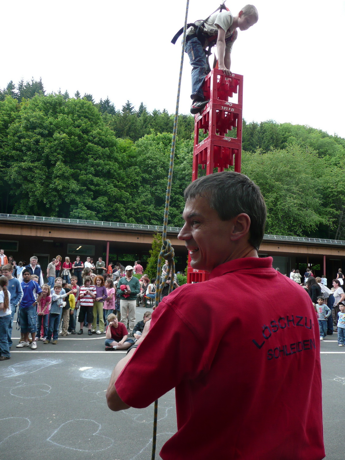 Beim Grundschulfest in Schleiden ließen Feuerwehrleute des Löschzuges Schleiden und Helfer des Roten Kreuzes die Kinder durch die Luft fliegen. Beim Kistenklettern ging es hoch hinaus.