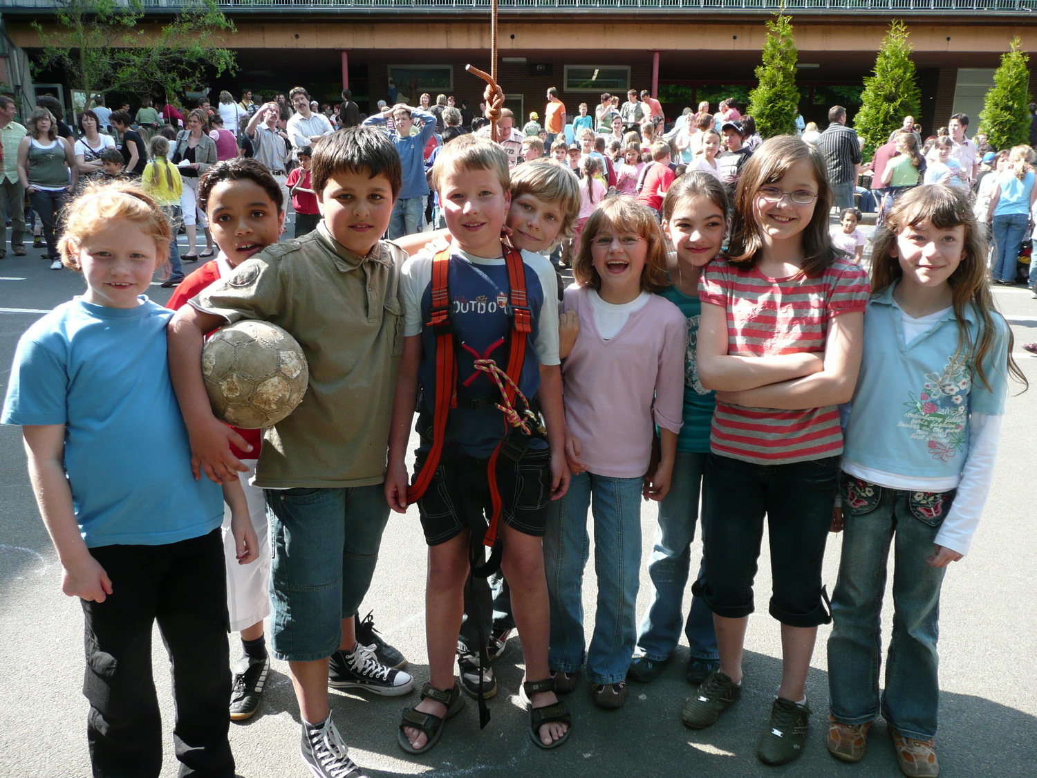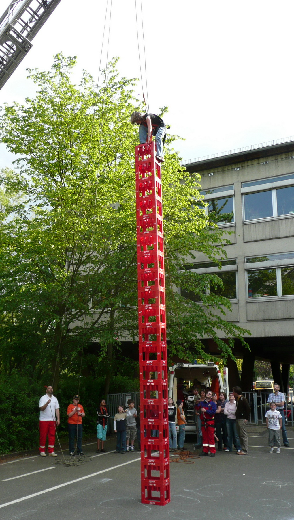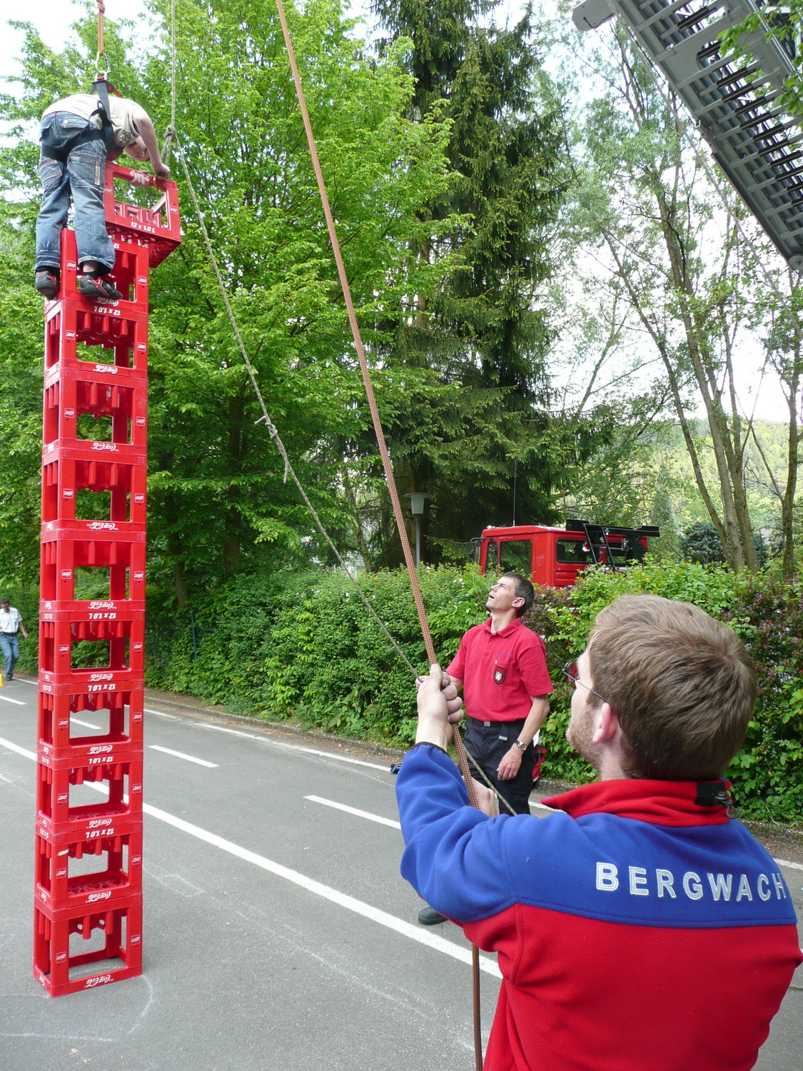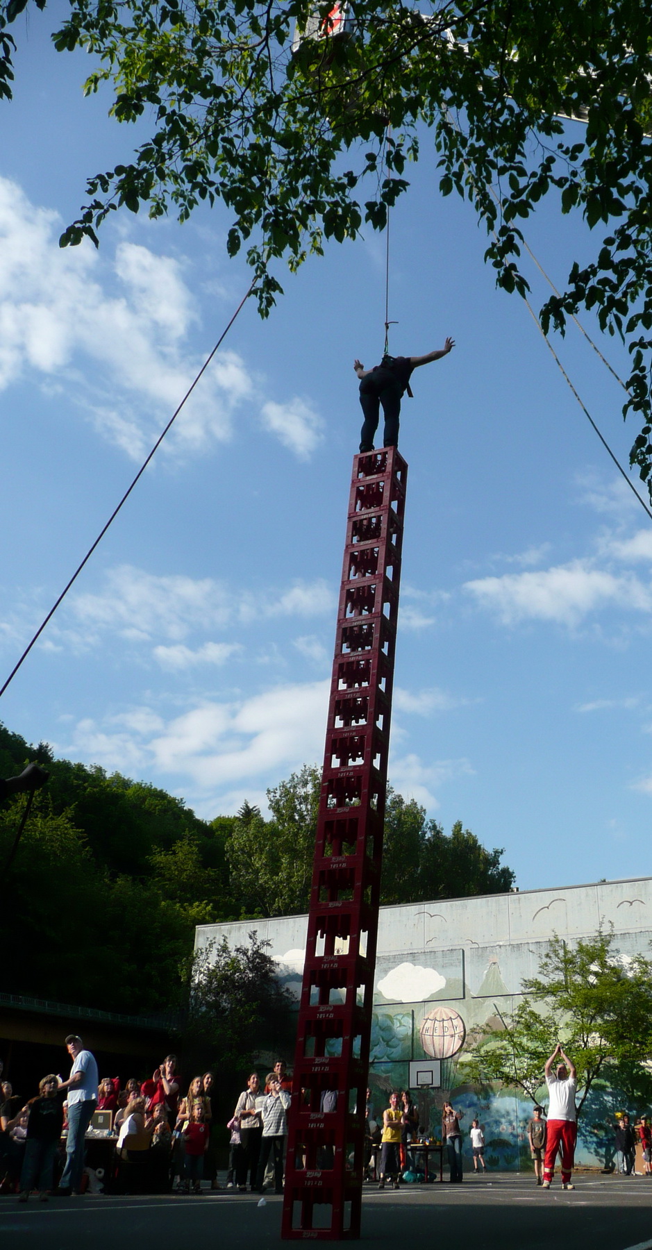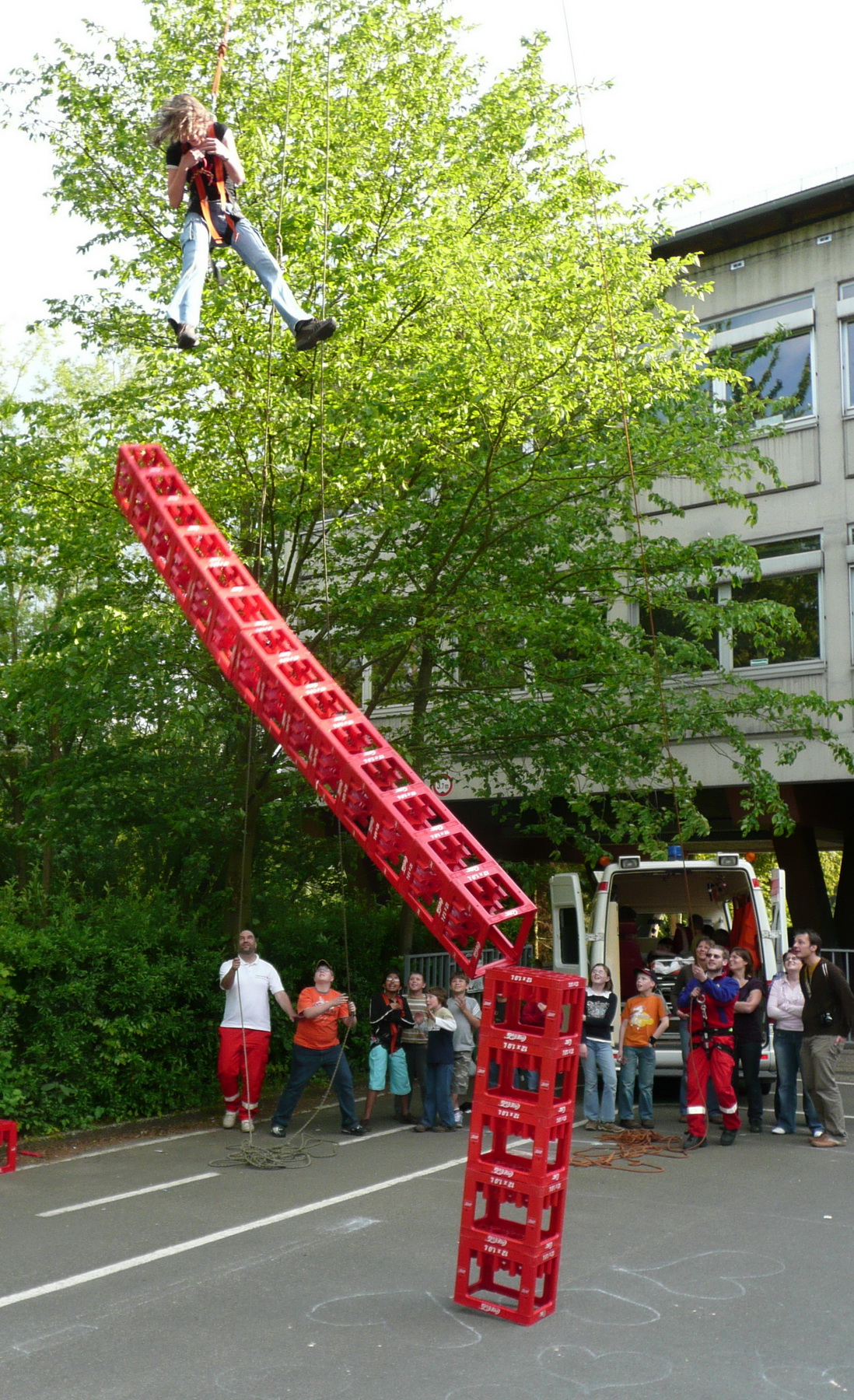 Beim Grundschulfest in Schleiden ließen Feuerwehrleute des Löschzuges Schleiden und Helfer des Roten Kreuzes die Kinder durch die Luft fliegen. Beim Kistenklettern ging es hoch hinaus.
