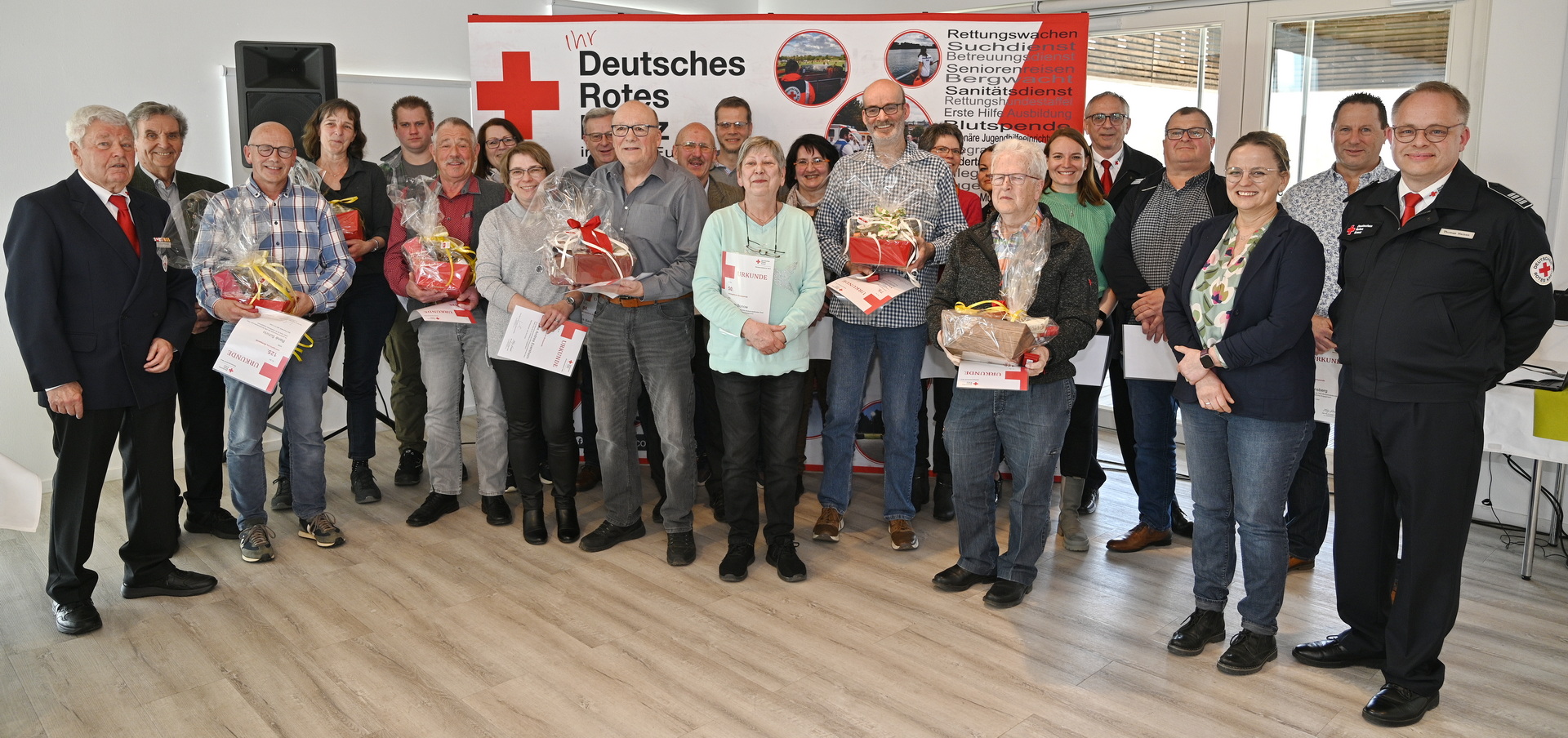 Für 125 Spenden konnten Lydia Wunderlich, Heinz-Ulrich Czechan und René Schirlo ausgezeichnet werden. Den absoluten „Highscore“ hatte an diesem Tag aber Ernst-Peter Schmitz, der für ganze 175 Spenden den größten Korb samt Ehrennadel und herzlichem Dank des Roten Kreuzes erhielt. Zusammen hatten alle „Vollbluthelden“ in 1.725 Sitzungen über 862 Liter Blut gespendet.