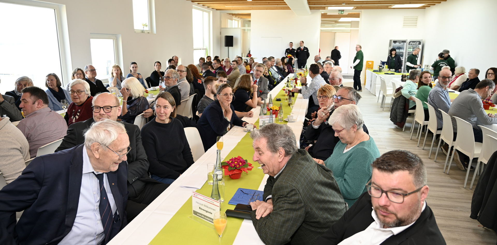 Für diese Einblicke erhielt er Broschüren mit der Geschichte Zülpichs und des DRK-Ortsvereins von Lothar Henrich, der ihm herzlich für sein Erscheinen dankte. So war der offizielle Teil des Frühlingsempfangs beendet und man genoss gemeinsam ein reichhaltiges Mittagessen mit Blick auf den sonnigen „Zülpicher See“. Das war auch verdient. Denn, so betonte Thomas Heinen zu den Ehrenamtlern unmissverständlich: „Danke. Ohne Euch wäre das alles nicht machbar!“