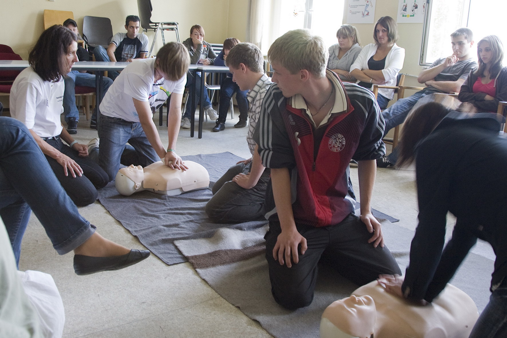 Das Rote Kreuz bietet auch einen „Kurz-Kursus“ zur Auffrischung an, der alle zwei Jahre empfohlen wird und bei dem individuell Bereiche geübt werden können, in denen sich die einzelnen Teilnehmer unsicher fühlen.