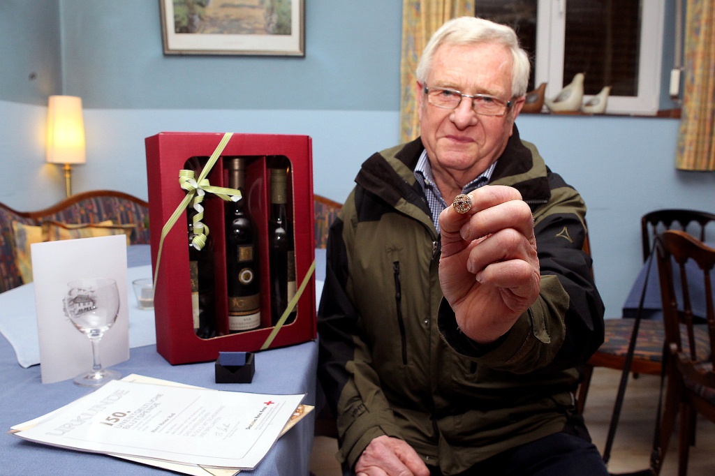 Kaller Rotes Kreuz ehrte treue Blutspender - Ortsvereins-Vorsitzender Dr. Karl Peter Schumacher: „Ohne Ihre Hilfe wären viele Behandlungsmöglichkeiten nicht möglich” - Besondere Ehrung für „Dauer-Spender” Heinz Hoß aus Sistig, der bereits 150 Mal Blut spendete