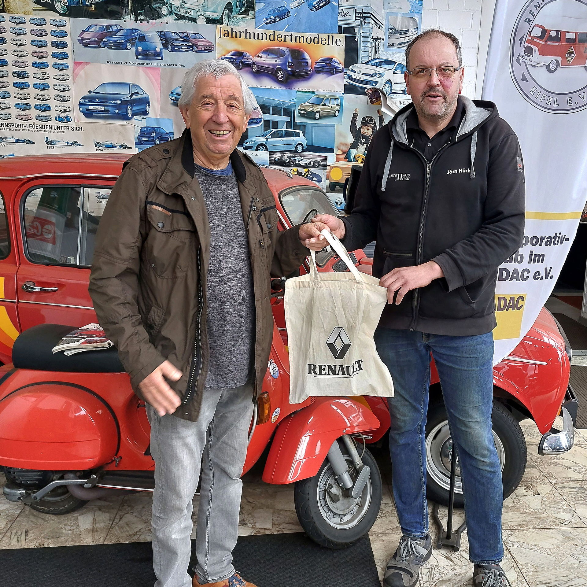 Aus der ganzen Bundesrepublik und den Beneluxländern waren 85 Besitzer der alten Schätzchen nach Roggendorf angereist, um dort ihre Renaults zu präsentieren. Ältestes Fahrzeug war ein Renault 4 CV von 1954. Besondere Aufmerksamkeit weckten zehn „Alpine“-Modelle. Des Weiteren waren durch die Modelle R4, R6, R8 und R16 fast das komplette Renault-Oldtimer-Programm zu sehen gewesen. Auch eine Tombola mit 150 Preisen trug dazu bei, dass Jörn Hück eine Spende von fast 1700 Euro an Willi Greuel übergeben konnte.