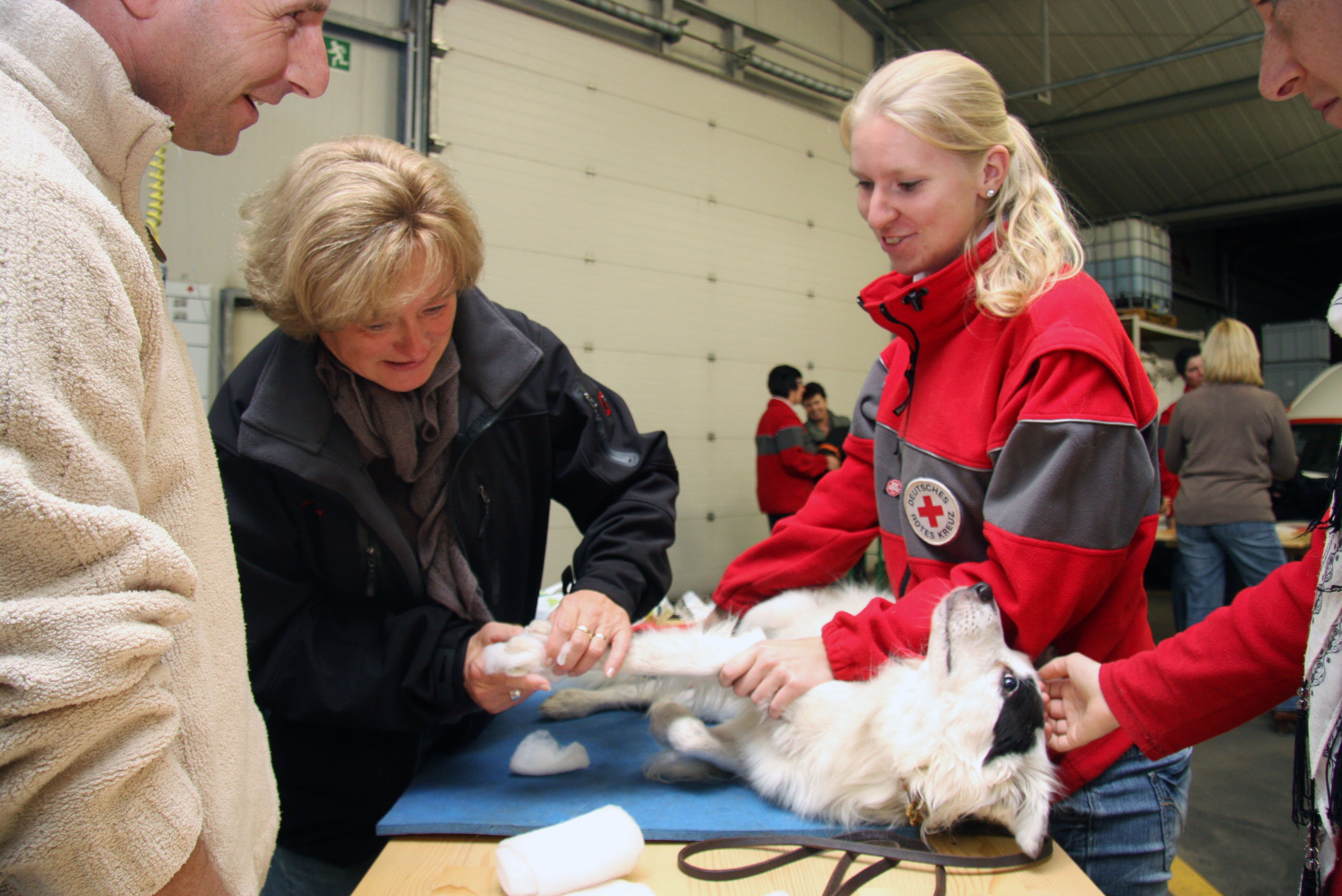 Wie stelle ich einen Erste-Hilfe-Kasten für meinen treuesten Begleiter zusammen? Wie gehe ich mit dem verletzten Hund um? Auf diese Fragen gab es Antwort im Kursus „Erste Hilfe am Hund“ des Roten Kreuzes im Kreis Euskirchen.