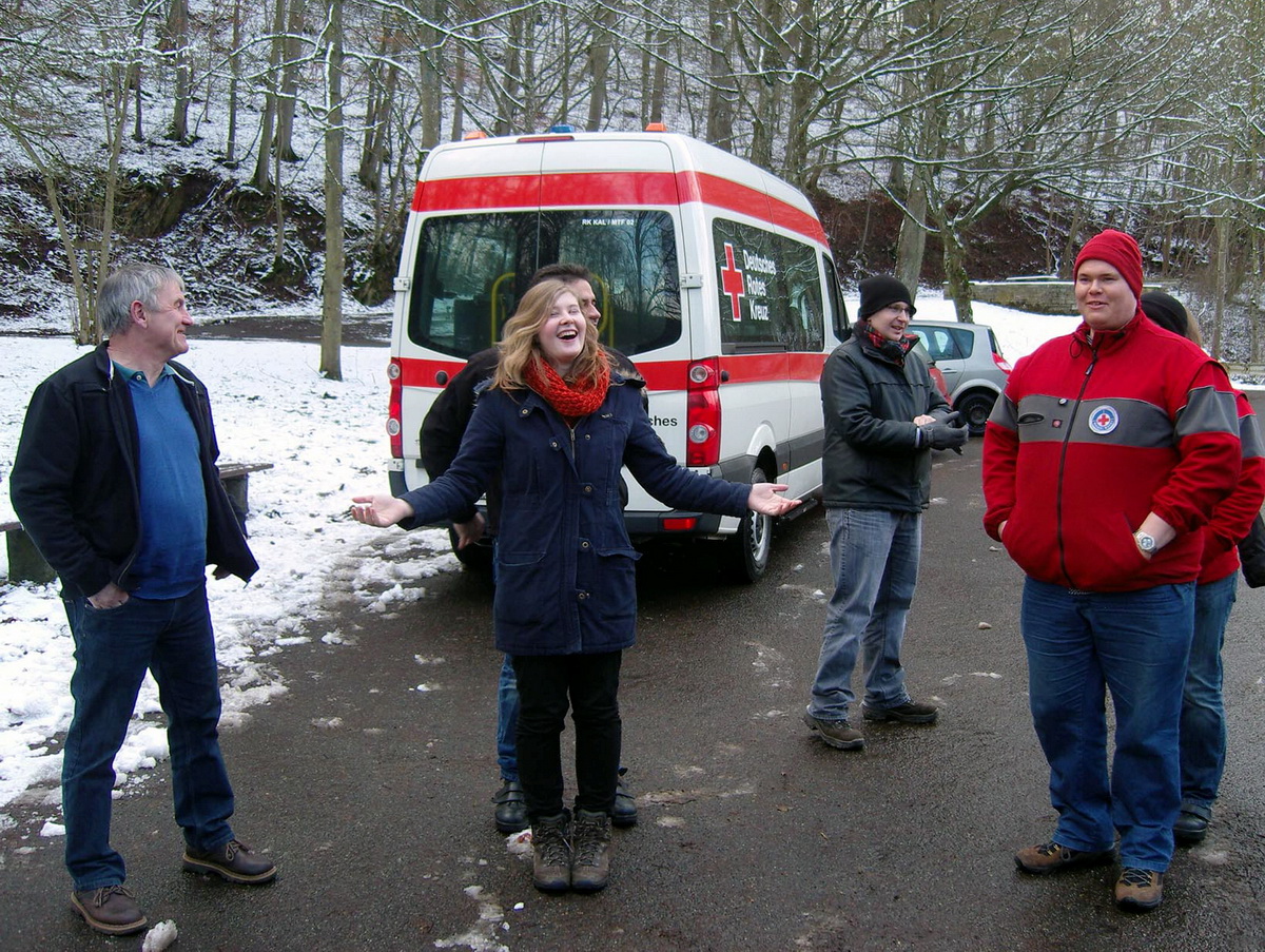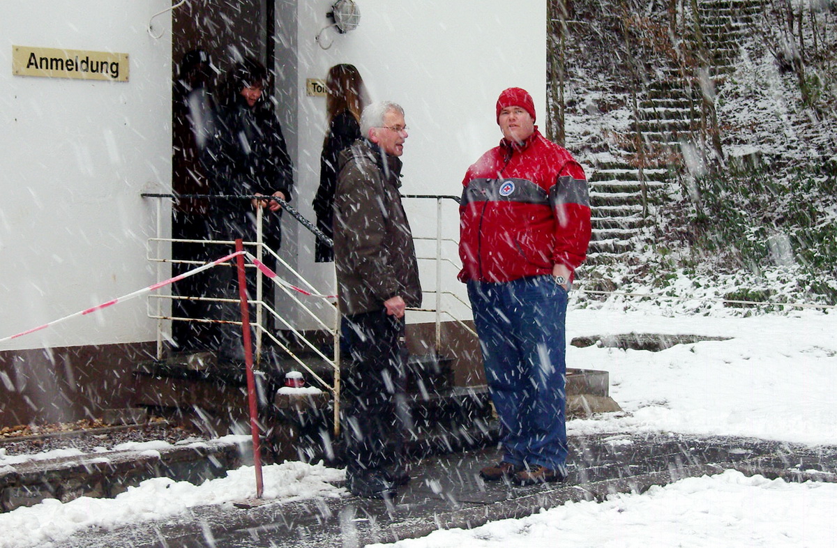Auf Vorschlag und Initiative von Heribert Gerstenmeyer traf man sich zunächst am Parkplatz hinter Urft und wanderte gemeinsam durch den frisch verschneiten Eifelwald zum Bunkereingang, der sich - getarnt in einer Doppelgarage eines privaten Wohnhauses - am Ortsrand von Urft befindet. In den beiden Führungen durch den 1962 gebauten geheimen Atombunker in Urft erläuterten die heutigen privaten Betreiber, Harald und Claus Röhling, in eindrucksvoller Weise, wie zu Zeiten des Kalten Krieges die Landesregierung, der Ministerpräsident und 200 Experten bei einem Atomkrieg darin Schutz gefunden und die Regierungsgeschäfte weitergeführt hätten.