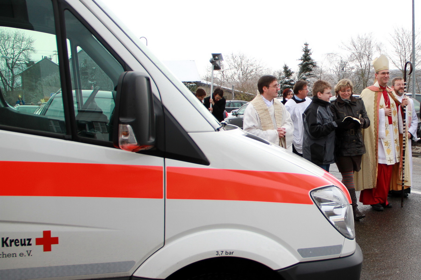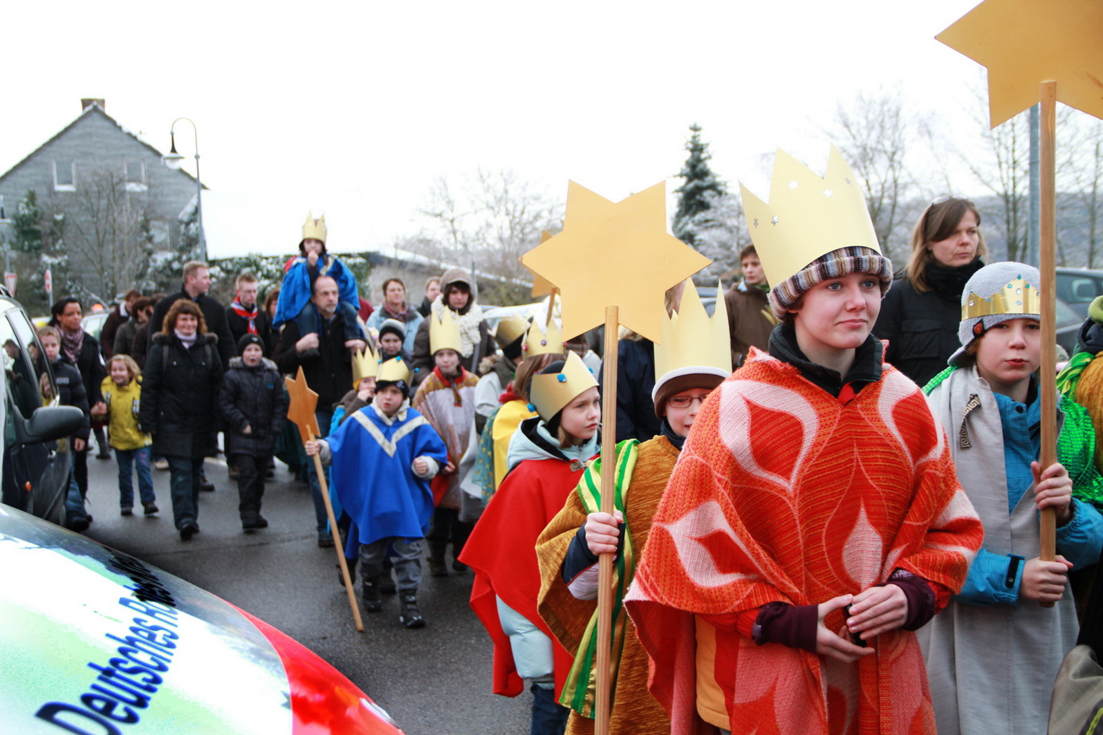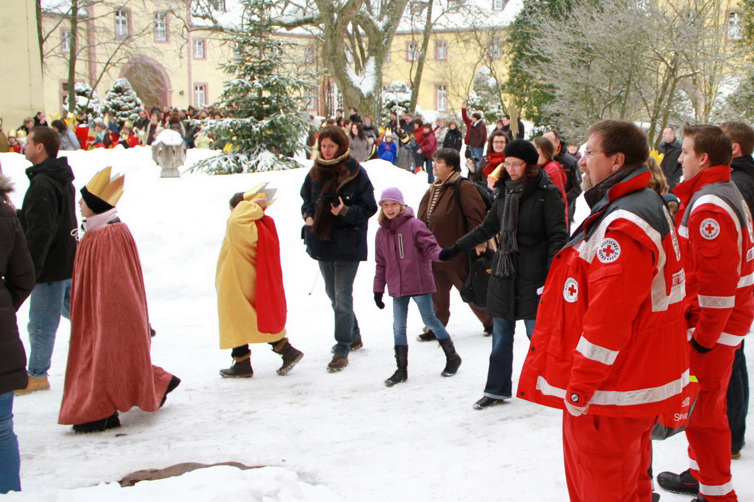 Damit auch für die Sicherheit der kleinen Königinnen und Könige gesorgt war, war der Gemeinschaftsleiter des Roten Kreuzes, Bert Spilles, mit zwei weiteren Rotkreuzlern angerückt und behielt sowohl in der Basilika als auch später im Klosterhof den Überblick über das quirlige Königsvolk.