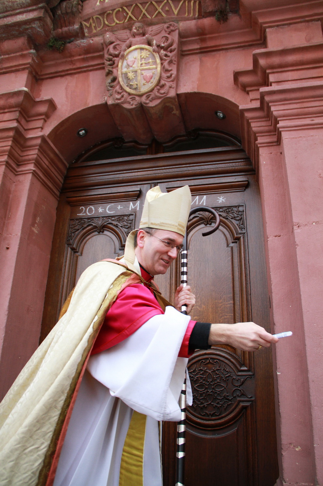Dass die Buchstaben eine Abkürzung sind für „Christus mansionem benedictat“ – „Christus segne dieses Haus!“ und nicht für „Caspar, Melchior, Balthasar“, wussten die Kinder natürlich, als Weihbischof Borsch den ersten Segensspruch an die große Klosterpforte in Steinfeld schrieb.