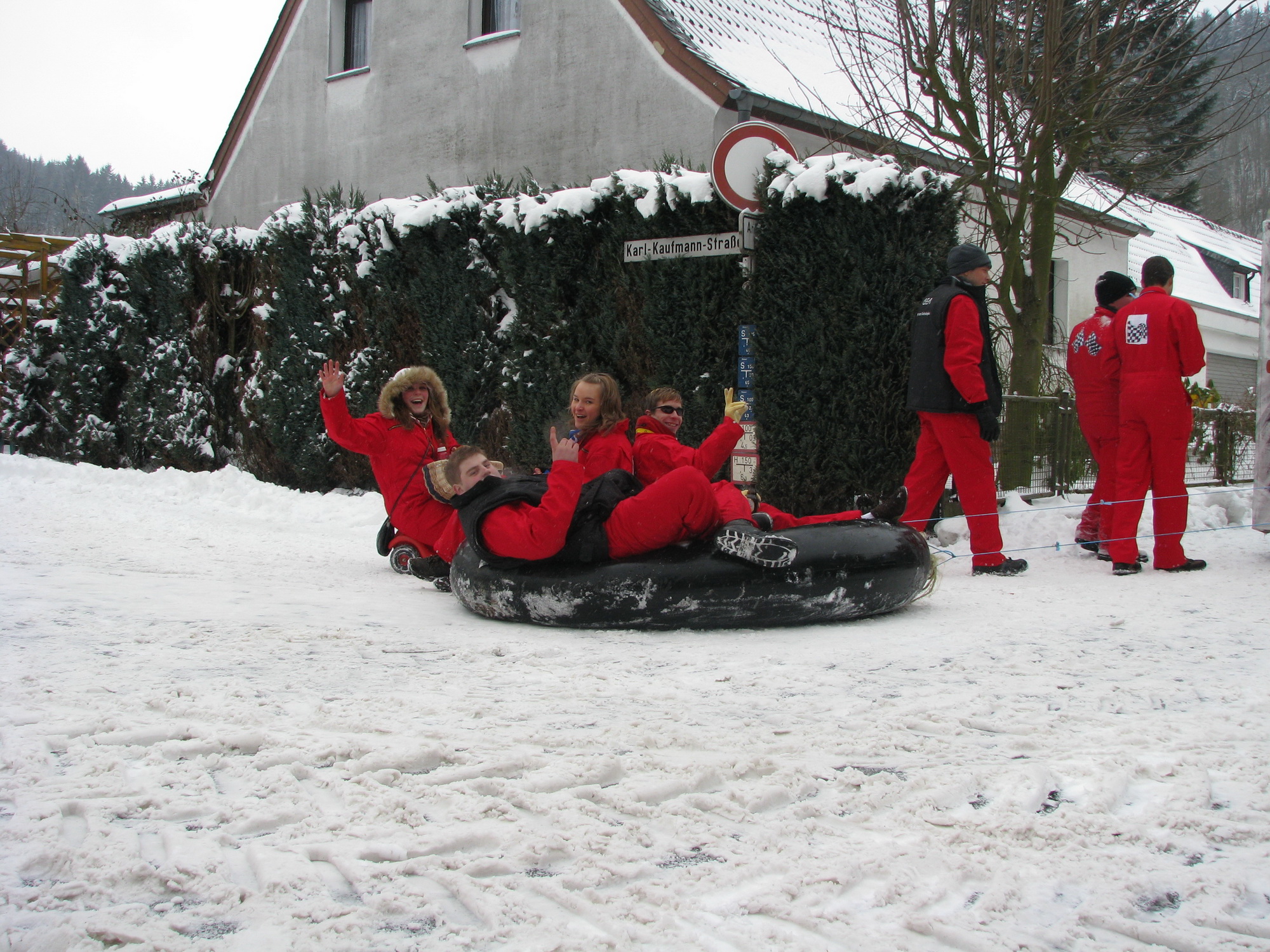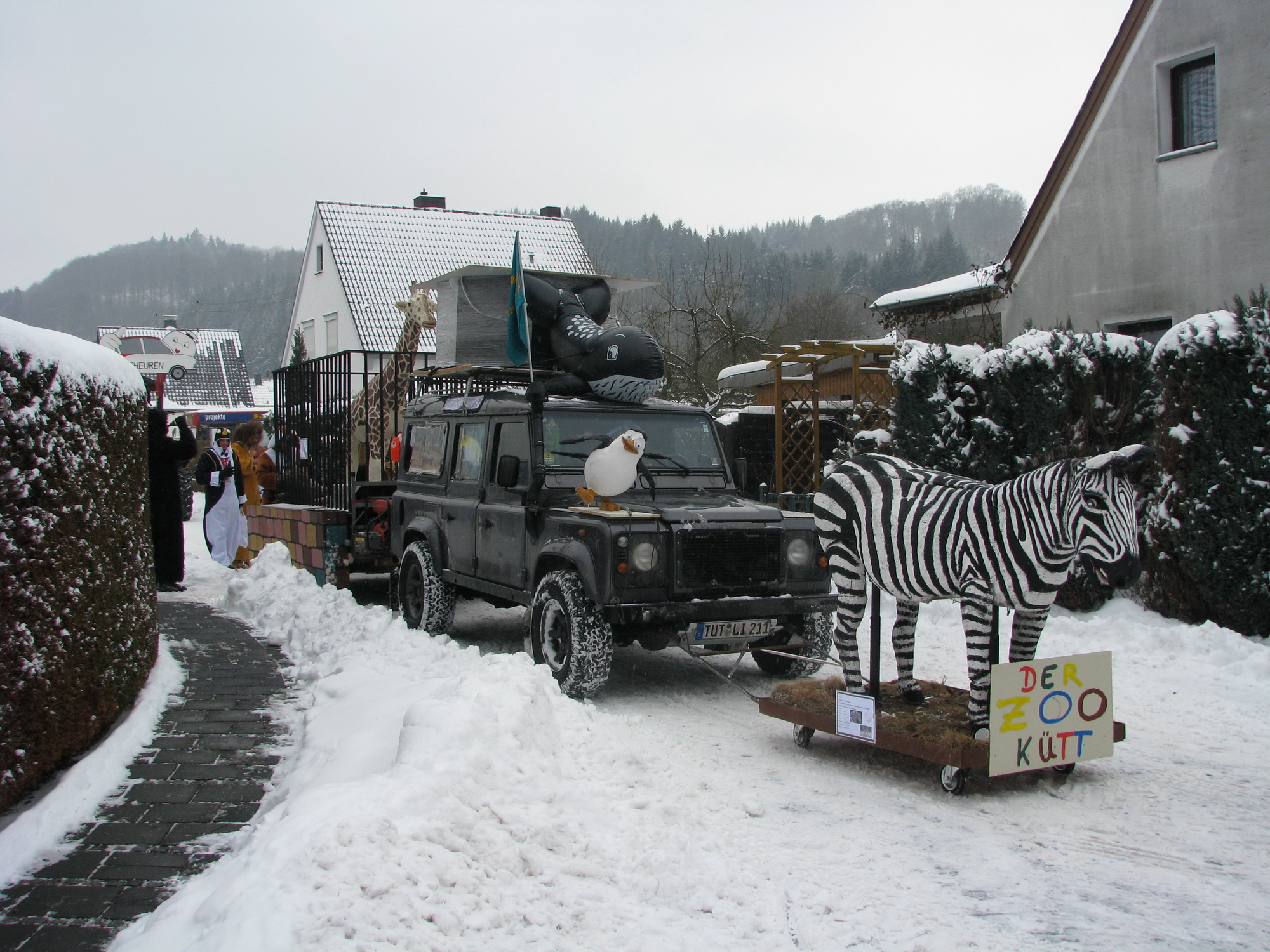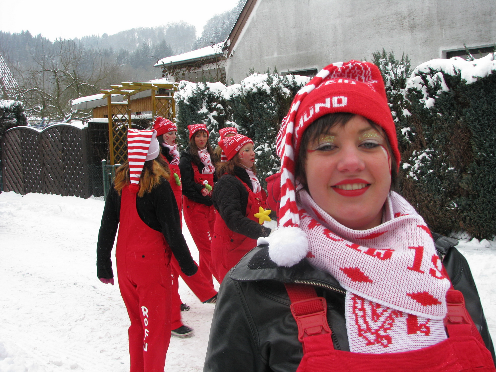 Damit das Karnevalstreiben nicht etwa in einem Fiasko enden kann, ist das Deutsche Rote Kreuz bei den Veranstaltungen der jecken Tage stets vor Ort. Auf den schneebedeckten Straßen Schleidens kam der neue Mannschaftstransportwagen (MTW) der Bereitschaft Schleiden zum Einsatz.