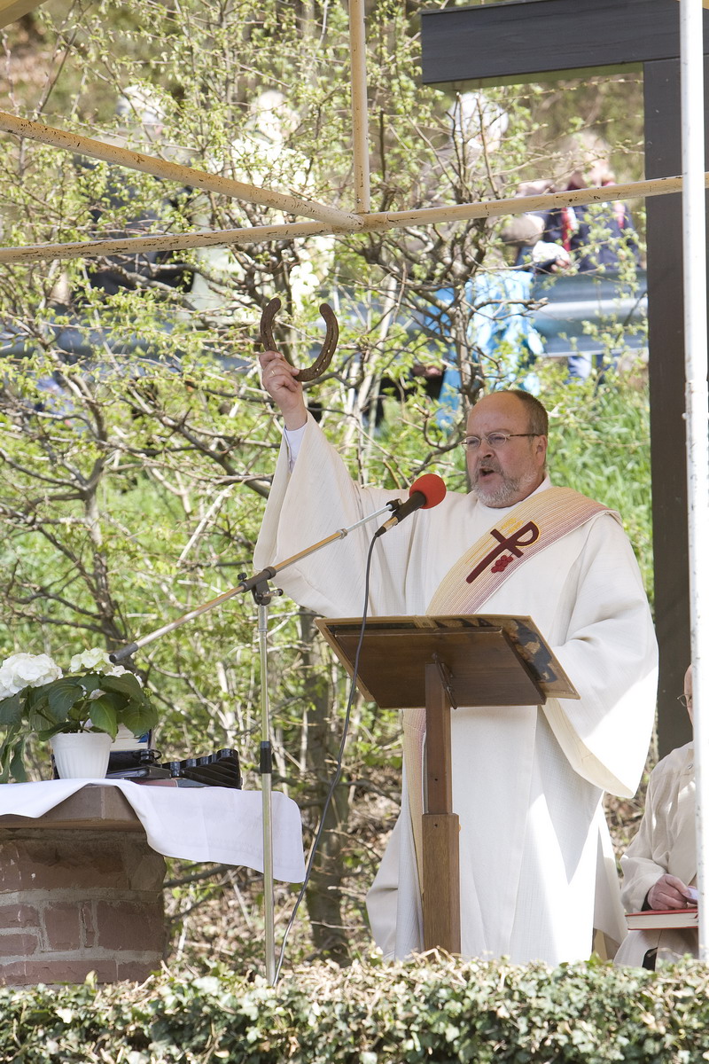 Ein Zusammentreffen dieser beiden bedeutenden Feiertage, wie es sie zuletzt 1913 gegeben hatte und nächstes Mal erst wieder im Jahre 2160 geben wird, so sagte Rotkreuz-Pressesprecher Manfred Lang, der in seiner Eigenschaft als Ständiger Diakon diesmal Festprediger beim Sankt-Georgsritt war und der vorüber reitenden Prozession am Ende vom Pferd aus den sakramentalen Segen spendete. Die Heilige Messe wurde von Pfarrer Kurt Hoberg zelebriert. Es assistierten die Diakone Bruno Lascheid und Manfred Lang. Der Musikverein Kallmuth begleitete den Festtag musikalisch.