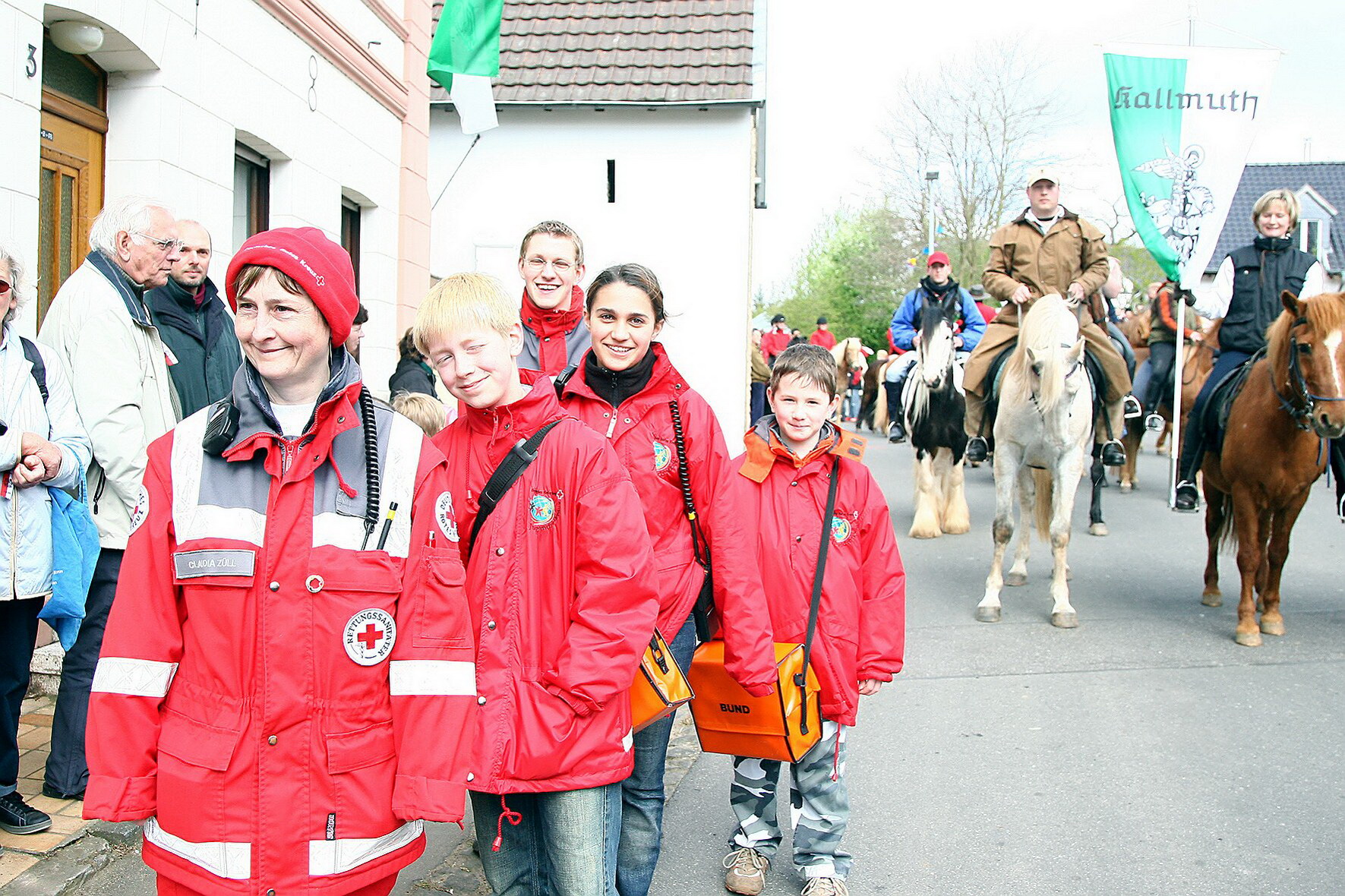 Mechernich-Kallmuth – Etwas mehr als 200 Pferde und 1000 Fußpilger, darunter Rotkreuz-Schirmherr Landrat Günter Rosenke, kamen diesmal am 1. Mai zum Sankt-Georgs-Ritt nach Mechernich-Kallmuth. Und wie jedes Jahr wachte das Rote Kreuz im Kreis Euskirchen über die Teilnehmer. Einsatzleiter war Bert Spilles selbst – er hatte Leute aus dem Jugendrotkreuz und vom Ortsverein Kall mitgebracht.