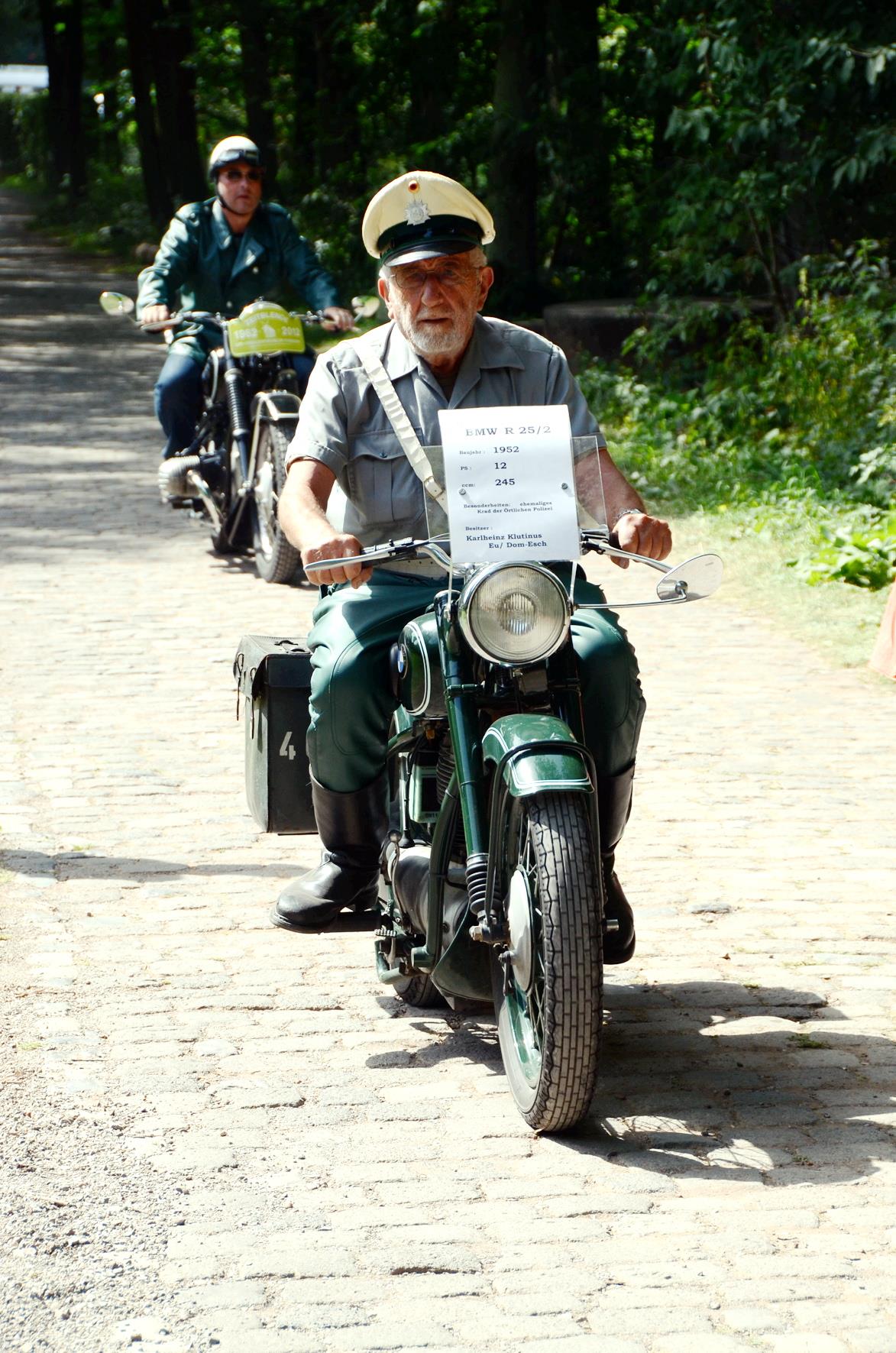 Überhaupt zieht sich das Thema „Sicherheit im Straßenverkehr“ wie ein roter Faden durch die sechste Auflage dieser Museumsveranstaltung: Lehrtafeln erinnern an die Verkehrserziehung im Schulunterricht, der ADAC präsentiert ein „Straßenwacht“-Motorradgespann, und Winfried Küpper, Elektriker im Freilichtmuseum, setzt einen „Eisernen Schutzmann“ in Betrieb, den die Museumsgäste auch betätigen können: Die heute fast alle wieder verschwundenen grünen Notrufsäulen mit dem gelben Blinklicht auf dem Dach halfen in Zeiten, in denen das eigene Telefon noch Luxus war, Menschenleben zu retten.