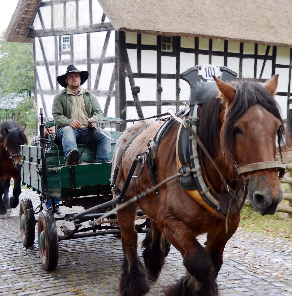 Da waren nicht nur einspännig im Heuwender marschierende Westerwälder Kühe zu sehen, sondern auch Percherons im Zweierpack vor dem schweren Ackerwagen der Erftstädter Zuckerrübensteppe oder drei Pintos als Troika nebeneinander.