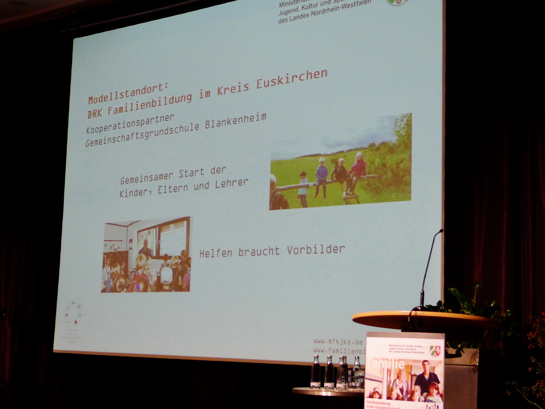 Gestern fand die Abschlussveranstaltung des Projektes "Familienbildung in der Grundschulzeit" in Düsseldorf statt. Ilona Raabe präsentierte u.a. Ute Schäfer, Ministerin für Familie, Kinder, Jugend, Kultur und Sport des Landes NRW die Ergebnisse des Modellstandortes Euskirchen