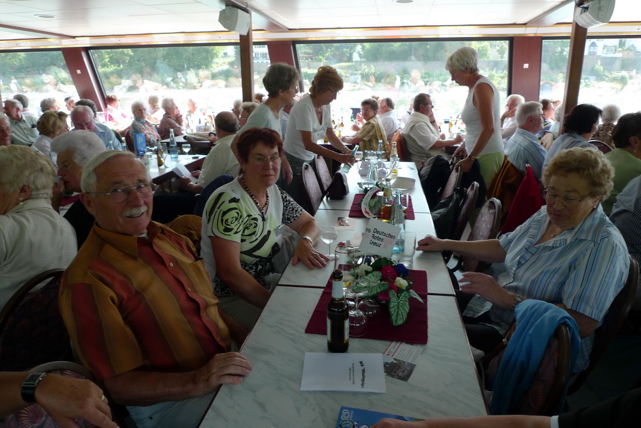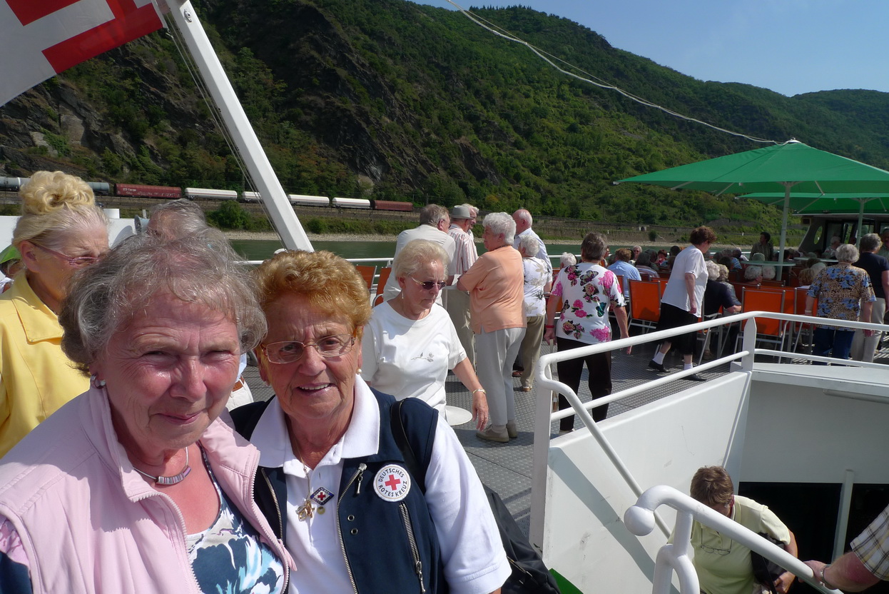 Kreis Euskirchen - Im ganzen Kreisgebiet waren Busse unterwegs, um die reiselustigen Senioren für die Rotkreuz-Rheinschifffahrt einzusammeln. Von Koblenz ging es dann mit dem Schiff den Rhein hinauf bis zur Loreley. Bei munteren Klängen und strahlendem Sonnenschein waren alle Gäste bei bester Laune. Bei einer großen Tombola gab es wertvolle Preise zu gewinnen. Nach dem Landgang konnten sich die Gäste noch in St. Goar vergnügen, bevor dann am Abend die Busse Richtung Heimat fuhren. Fazit der Reisenden: Das war ein schöner Tag - und alle freuen sich schon auf die nächste Reise mit dem Roten Kreuz.