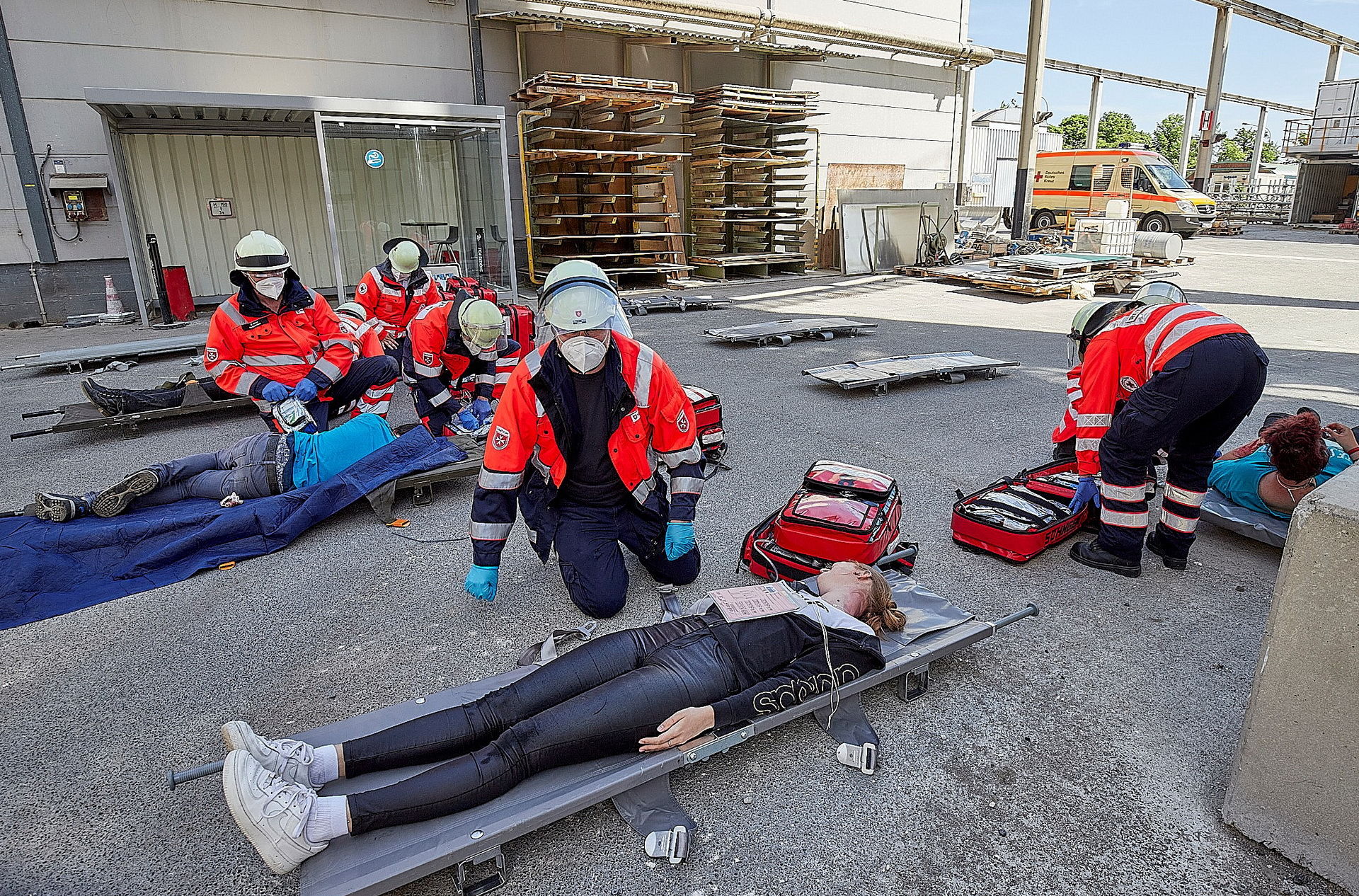 Im Normalbetrieb wird zweimal im Jahr im Verbund von Rotem Kreuz, Rettungsdienst, THW, Feuerwehr und Notärzten trainiert. Es gibt feste Strukturen, aber sie müssen geübt werden, so Rainer Brück: „Solche Lagen sind nicht das tägliche Brot!“ Allein das Abstellen der Fahrzeuge stellt ein Problem dar: Wer steht bei einem solchen Einsatz wo am besten? Und wie versorge ich in der Anrückphase die Opfer, wenn noch nicht genug Material und Personal vor Ort ist?