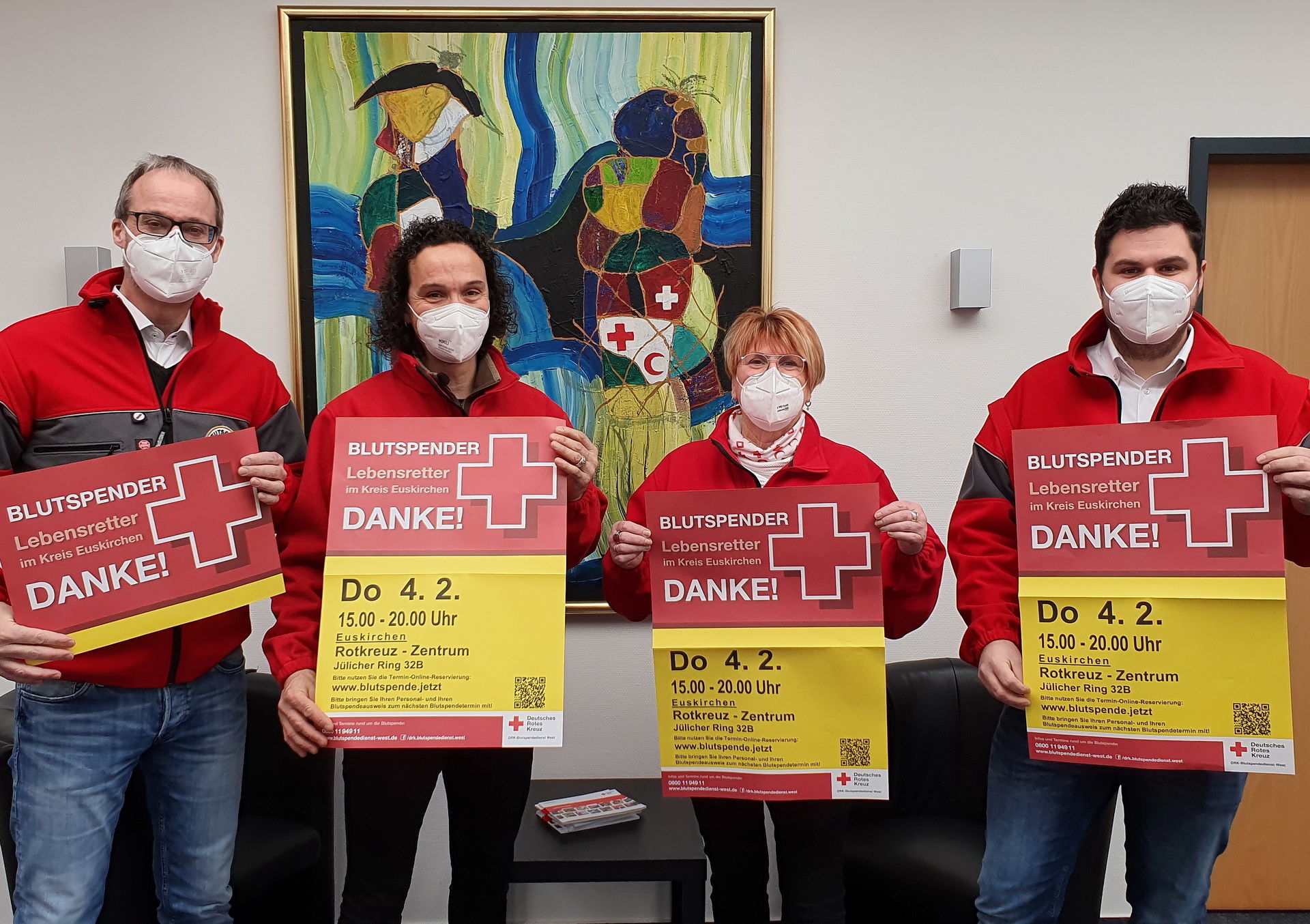 Wer einen Termin buchen möchte, kann diesen unter dem Stichwort des jeweiligen Ortes auf www.blutspendedienst-west.de/Blutspendetermine buchen. Weitere Blutspende-Termine in naher Zukunft sind Dienstag, 26. Januar, von 16 bis 20 Uhr im Schulzentrum, Finkenberg 8, in Blankenheim, am Dienstag, 2. Februar 2021, von 15.30 bis 20 Uhr im Forum, Blayer Str. 20, in Zülpich und zwei Tage später, am Donnerstag, 4. Februar, von 15 bis 20 Uhr im Rotkreuzzentrum Kreis Euskirchen/Eifel hinter dem Euskirchener Kreishaus, Jülicher Ring.