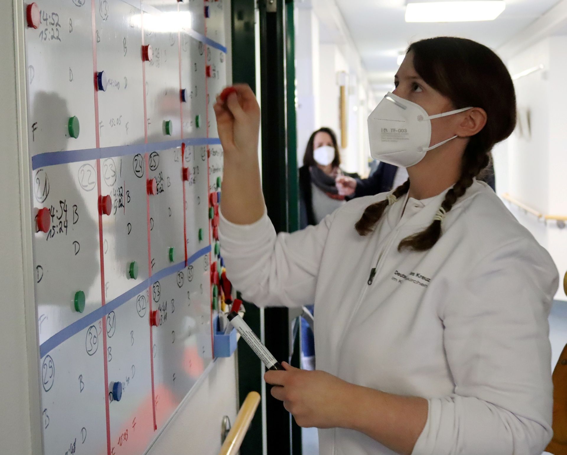 Es kann schon mal sein, dass man Menschen, die beispielsweise an Bluthochdruck litten und besonders aufgeregt waren, etwas beruhigen muss nach der Impfung. „Einige Menschen sind es auch nicht gewohnt, solange die Maske zu tragen. Wir helfen ihnen dann mit einem Glas Wasser“, erklärt Timo Prinz.