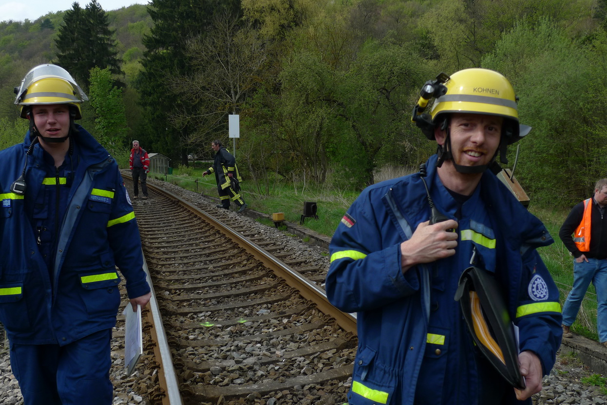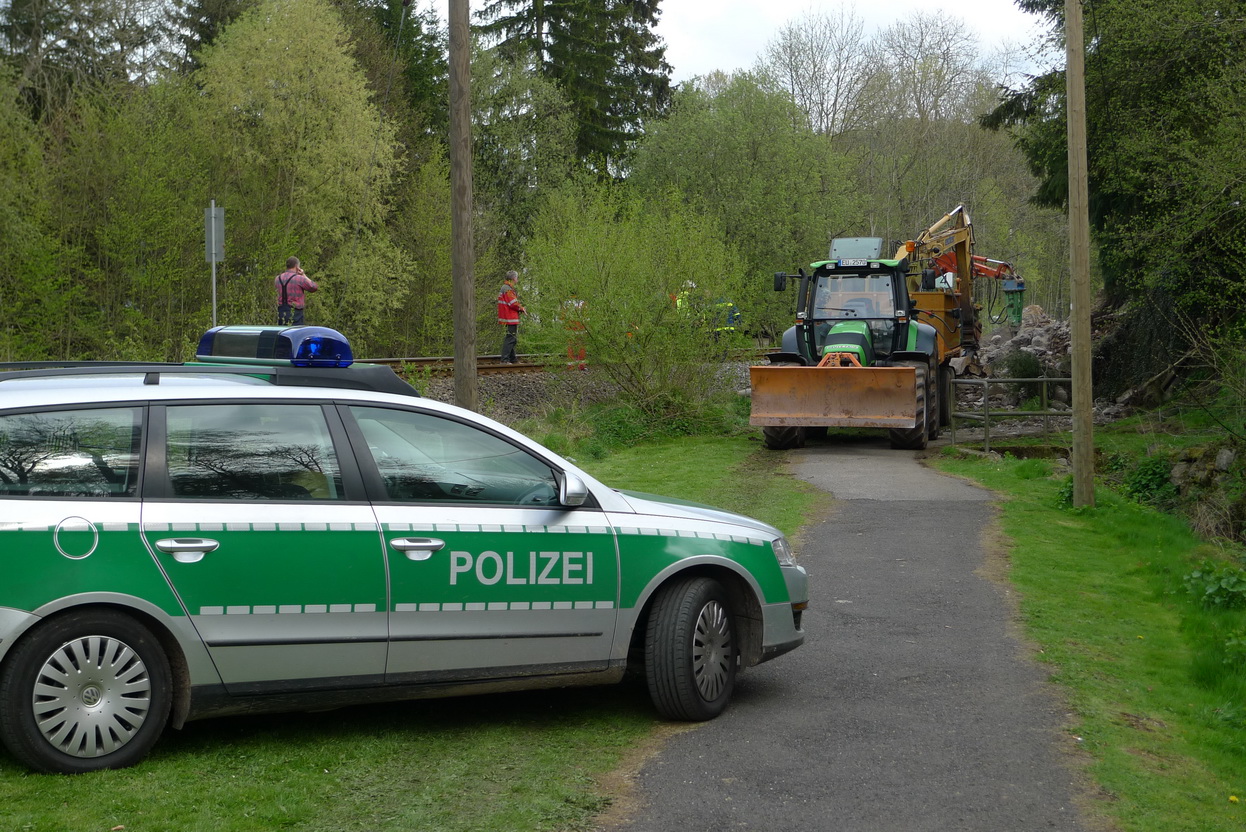Urft - Am frühen Samstagmorgen stürzte eine rund zehn Meter hohe Stützwand unweit der Bahnstrecke Köln – Kall – Trier ein. Umgehend nach der ersten Einsatzmeldung bei der Euskirchener Rettungsleitstelle machten sich die ersten Einsatzkräfte der Gemeindefeuerwehr Kall auf den Weg nach Urft, um sich ein Bild der Lage zu verschaffen. Ein Teil der Kaller Wehrleute befand sich zu diesem Zeitpunkt auf einer Übung, so dass Unterstützung durch die Wehren aus Schleiden und Nettersheim angefordert wurde.