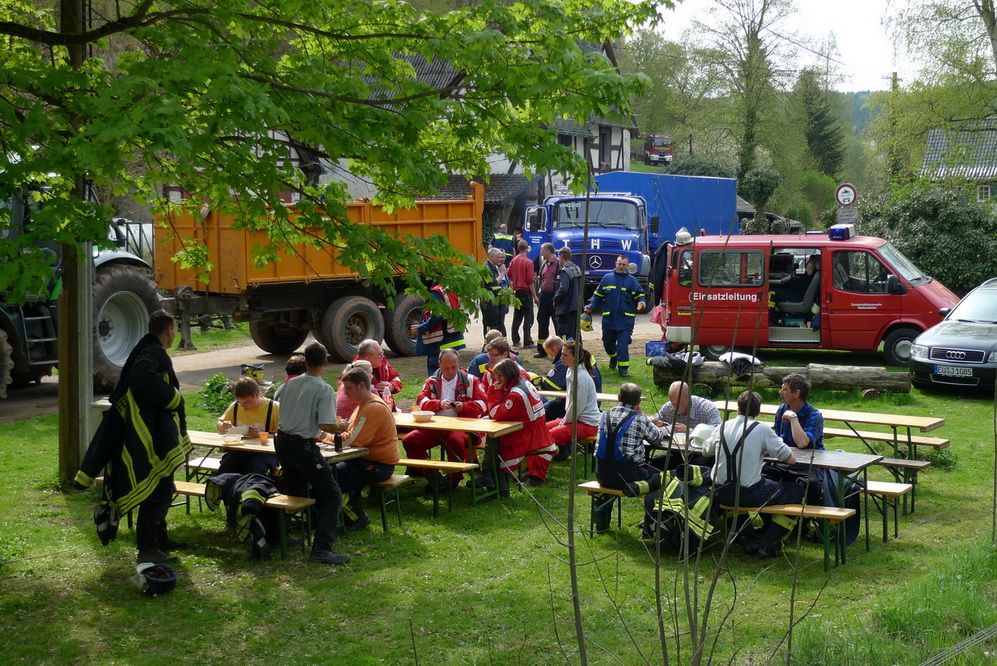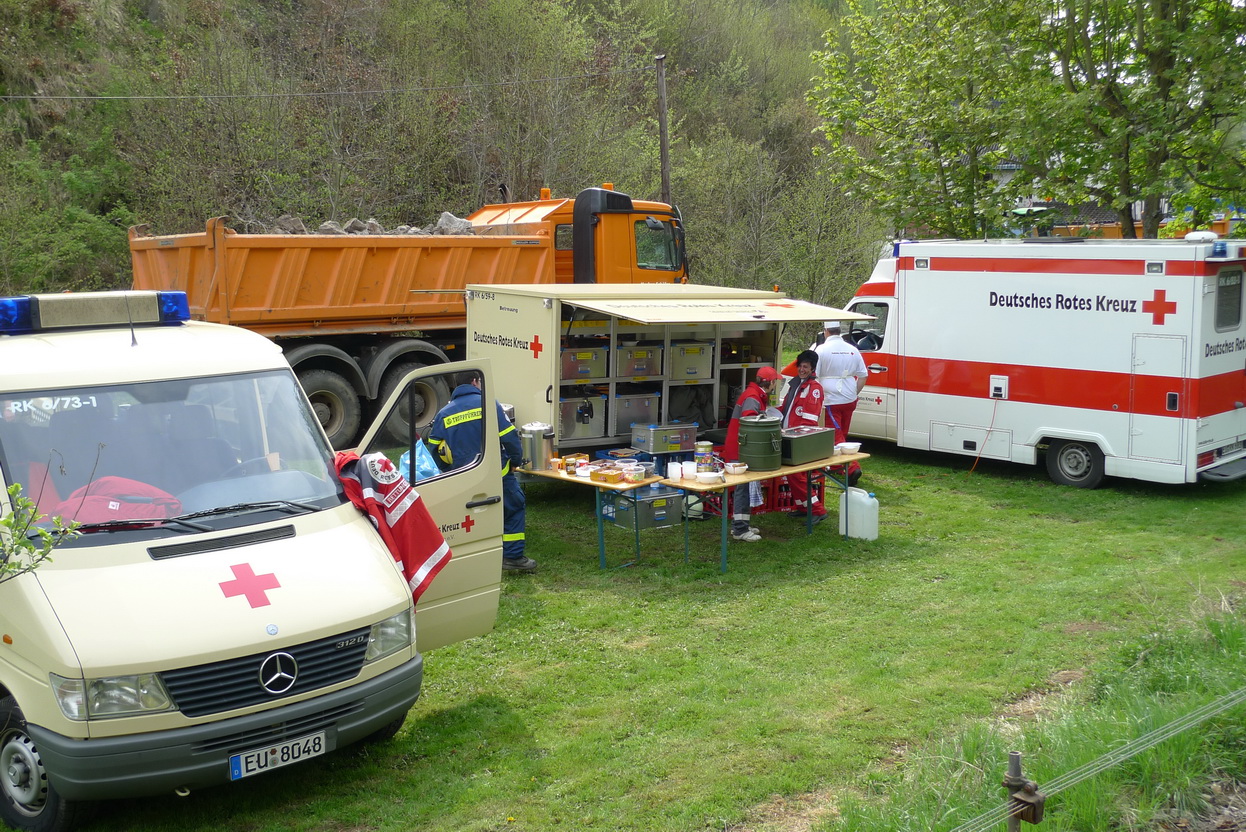 Die Einsatzkräfte sind durch die Betreuungsgruppe der Rotkreuzgemeinschaft Kall verpflegt und mit allem Nötigen versorgt worden, um sich in den verdienten Pausen nach anstrengender Arbeit zu erholen.