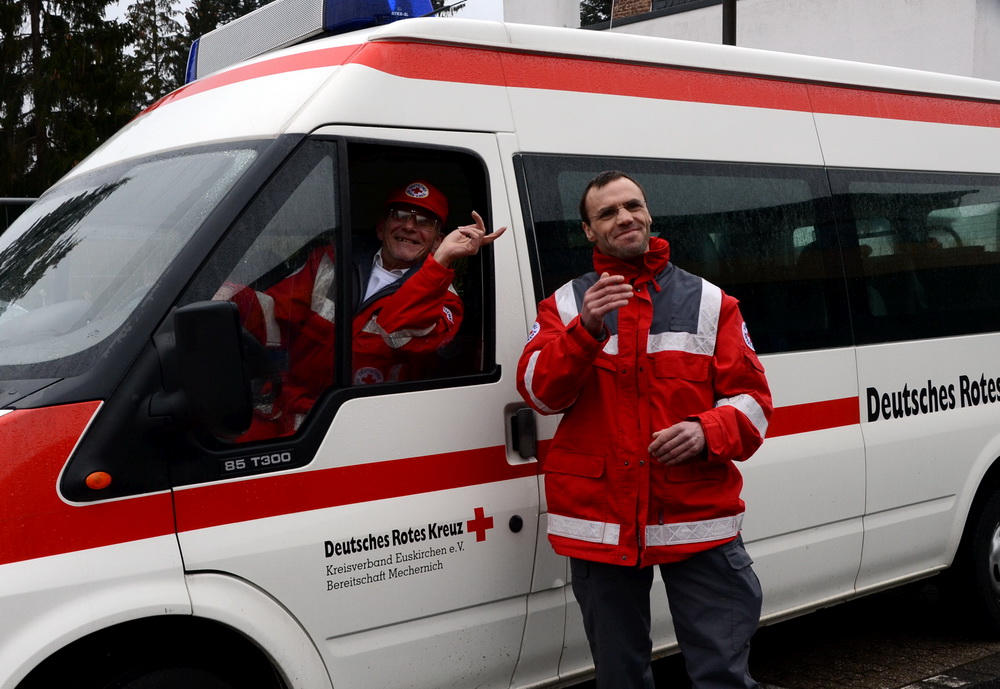 Jungfrau Volker „Volka“ Nüßmann sei zwar „ne Imitierte“, nämlich ursprünglich aus Duisburg, aber bereits „seit 40 Jahren hier“, befand der Gardegeneral. Dagegen komme Bauer Karl „Charly“ Theißen aus der Bergstraße und sei daher ein „echter Mechernicher“. Als Adjutanten standen dem jecken Trifolium auch bei der Schlacht um die leere Mechernicher Stadtkasse und die symbolischen Rathausschlüssel Friedel Hüllenkrämer und Dieter Schuldt (beide PGM) sowie Marcel Hembach vom Festausschuss Mechernicher Karneval (FMK) zur Seite.