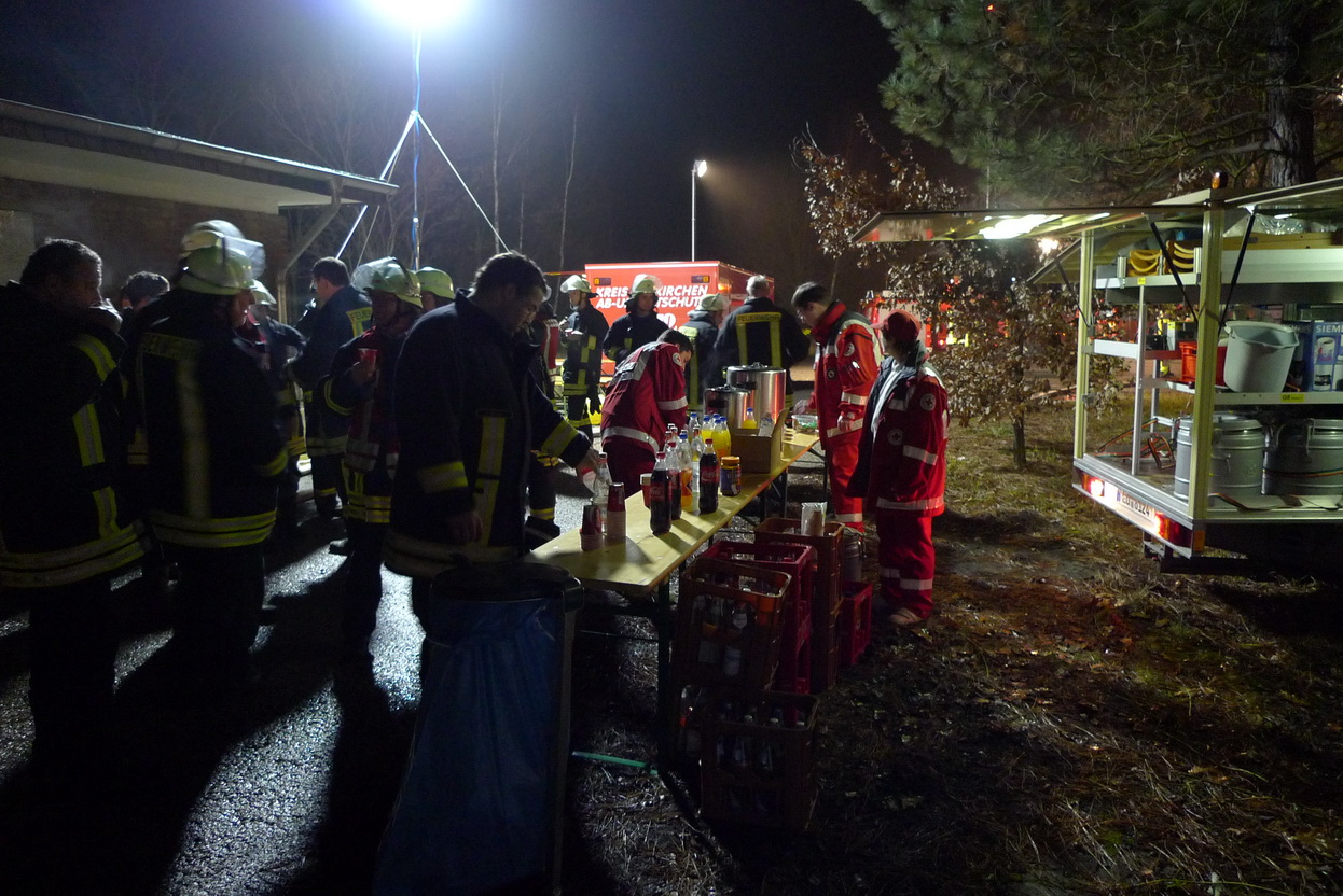 Die Löschzüge 1 und 2 der Stadt Mechernich, der Einsatzleitwagen II der Feuerwehr Kall, der Abrollbehälter "Alarm" aus Schleiden, Rettungsfahrzeuge des Kreises Euskirchen und des Roten Kreuzes und die Betreuungsgruppe des Roten Kreuz waren im Einsatz.