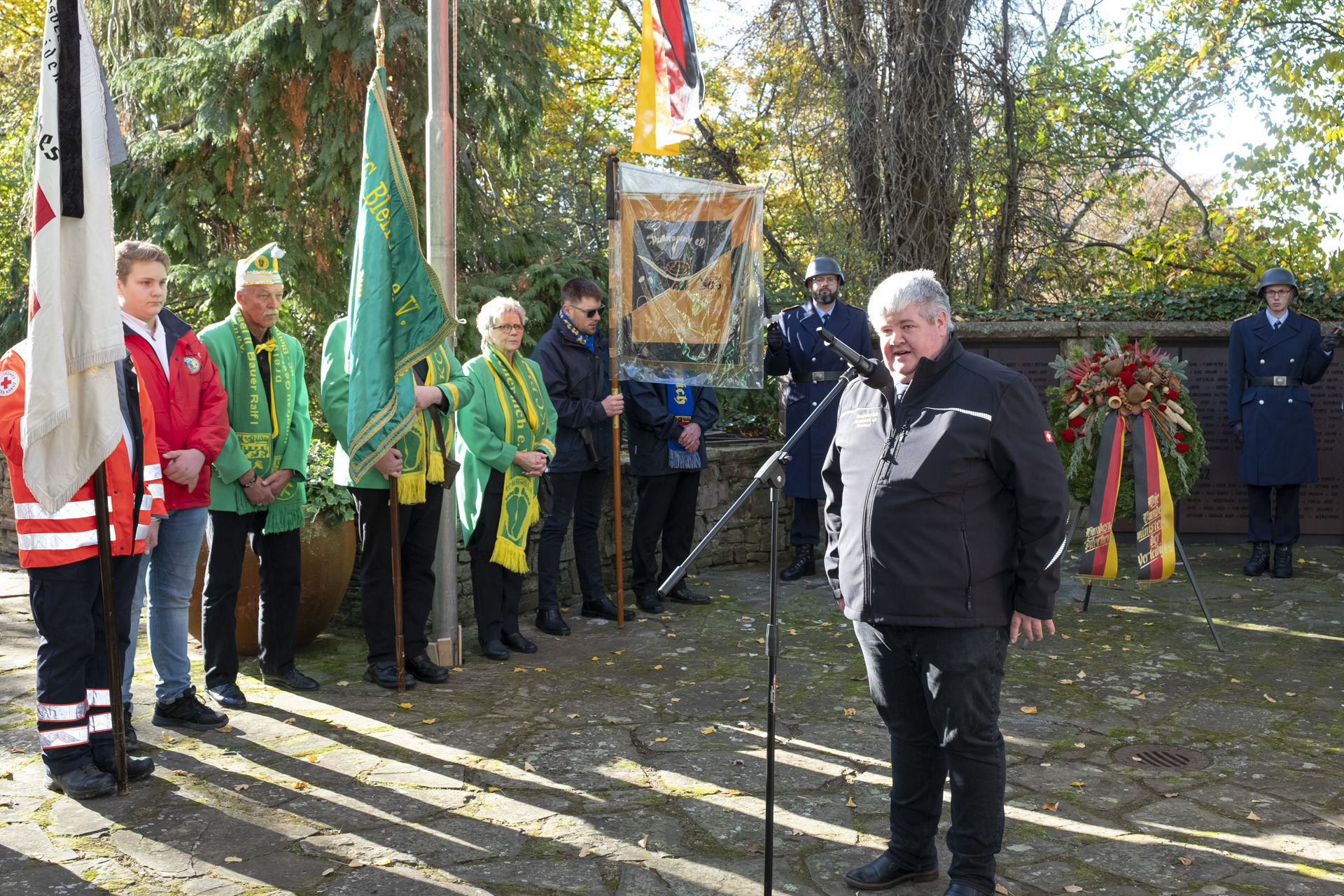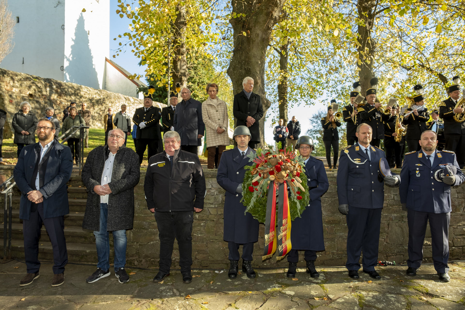 Michael Averbeck dankte den Organisatoren, dem Vereinskartell, den Vereinen, der Musikkapelle, der Bundeswehr und allen Anwesenden für ihre Beteiligung an diesem Gedenktag. „Denn auch Sie alle setzen damit ein Zeichen. Ein Zeichen des Guten gegen das Böse – ein Zeichen, dass wir gemeinsam etwas für den Frieden tun können“, sagte Michael Averbeck. Die Erinnerung an die so vielen Toten in den Weltkriegen und auch im aktuellen Ukraine-Krieg, müsse für alle die persönliche Aufforderung sein, täglich den Weg des Friedens zu gehen.
